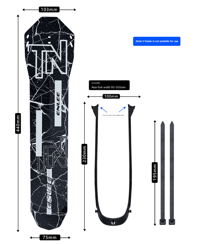 • Wide Compatibility (Excluding V-Brakes): Suitable for a variety of bicycles including mountain bikes (MTB), road bikes, and folding bikes with a rear fork width ranging from 90mm to 200mm. IMPORTANT NOTE: This mudguard is NOT compatible with bicycles equipped with V-brakes.