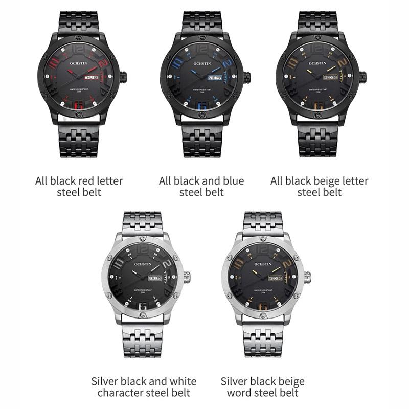 Stylish Day-date Men Quartz Watch with Steel Strap – Black Blue