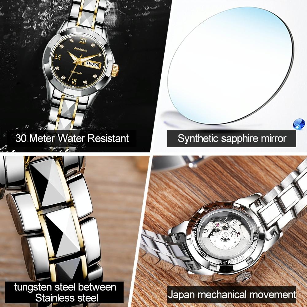 • 1 x 8813 Fashion Waterproof Luminous Automatic Mechanical Watch Women