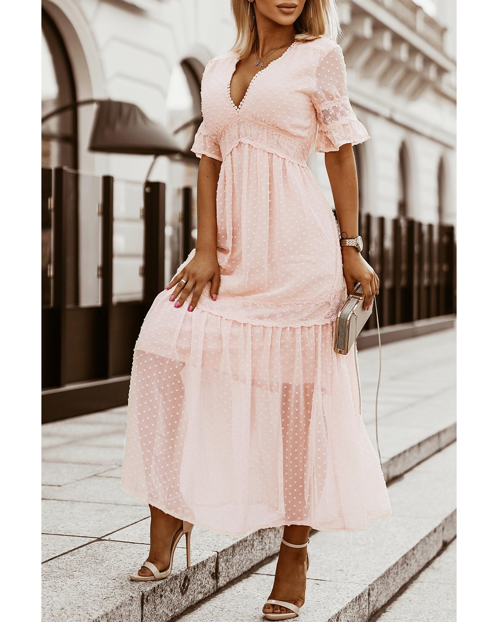 Swiss Dot Lace Trim Maxi Dress – 2XL