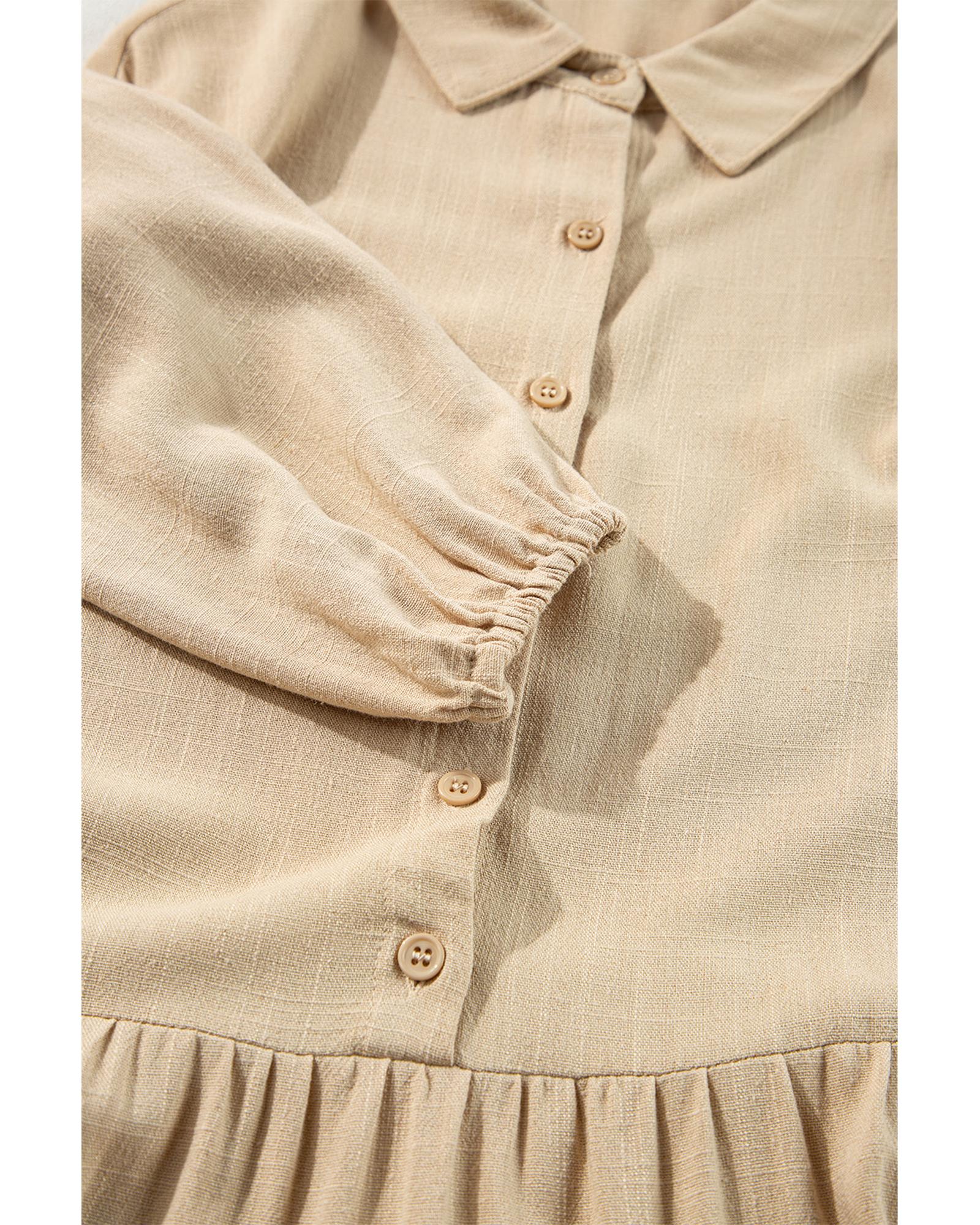 Tan Puff Sleeve Buttoned Tiered Pleated Shirt Mini Dress – XL