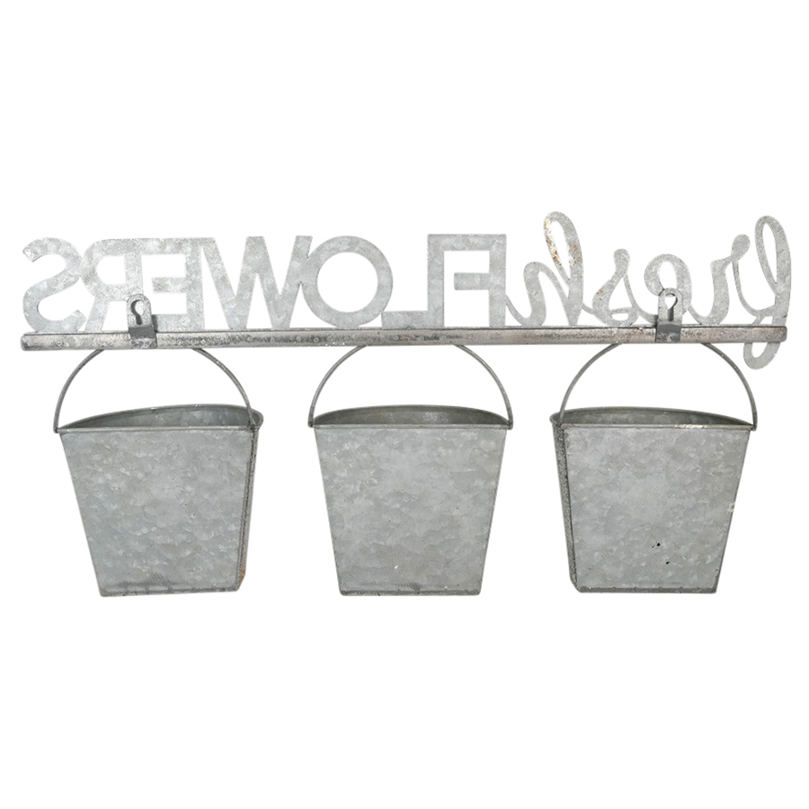 Three Bucket ‘Fresh Flowers’ Wall Planter 51x26cm