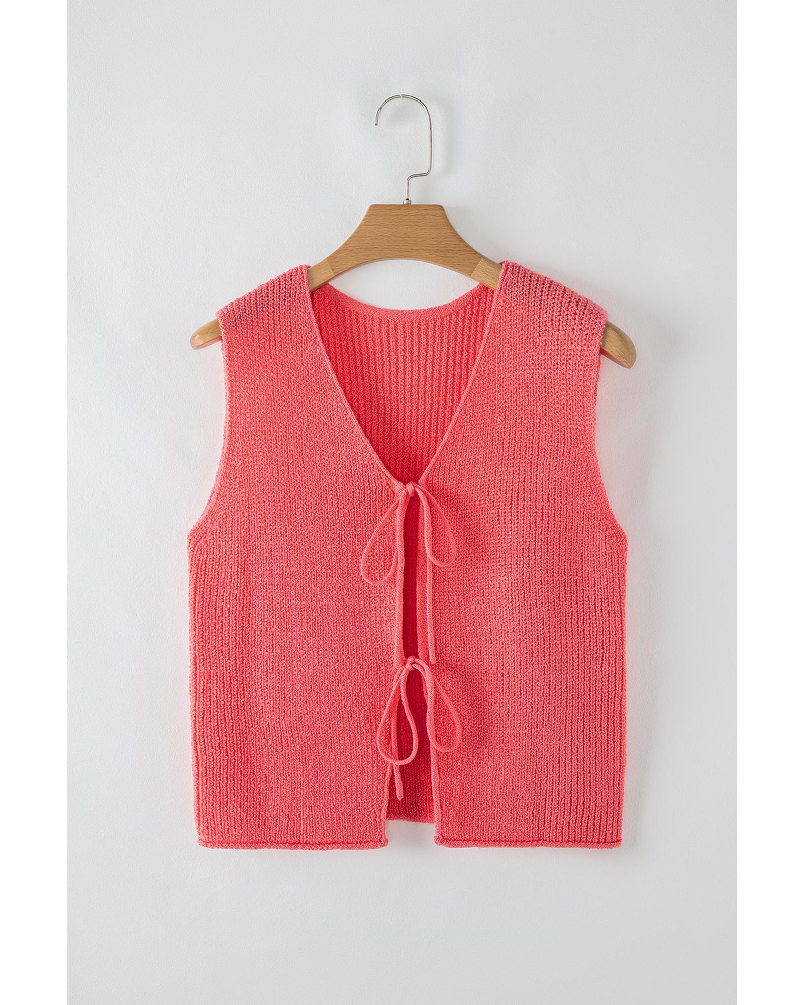 Tomato Red Lace-up Front V Neck Sweater Vest – L