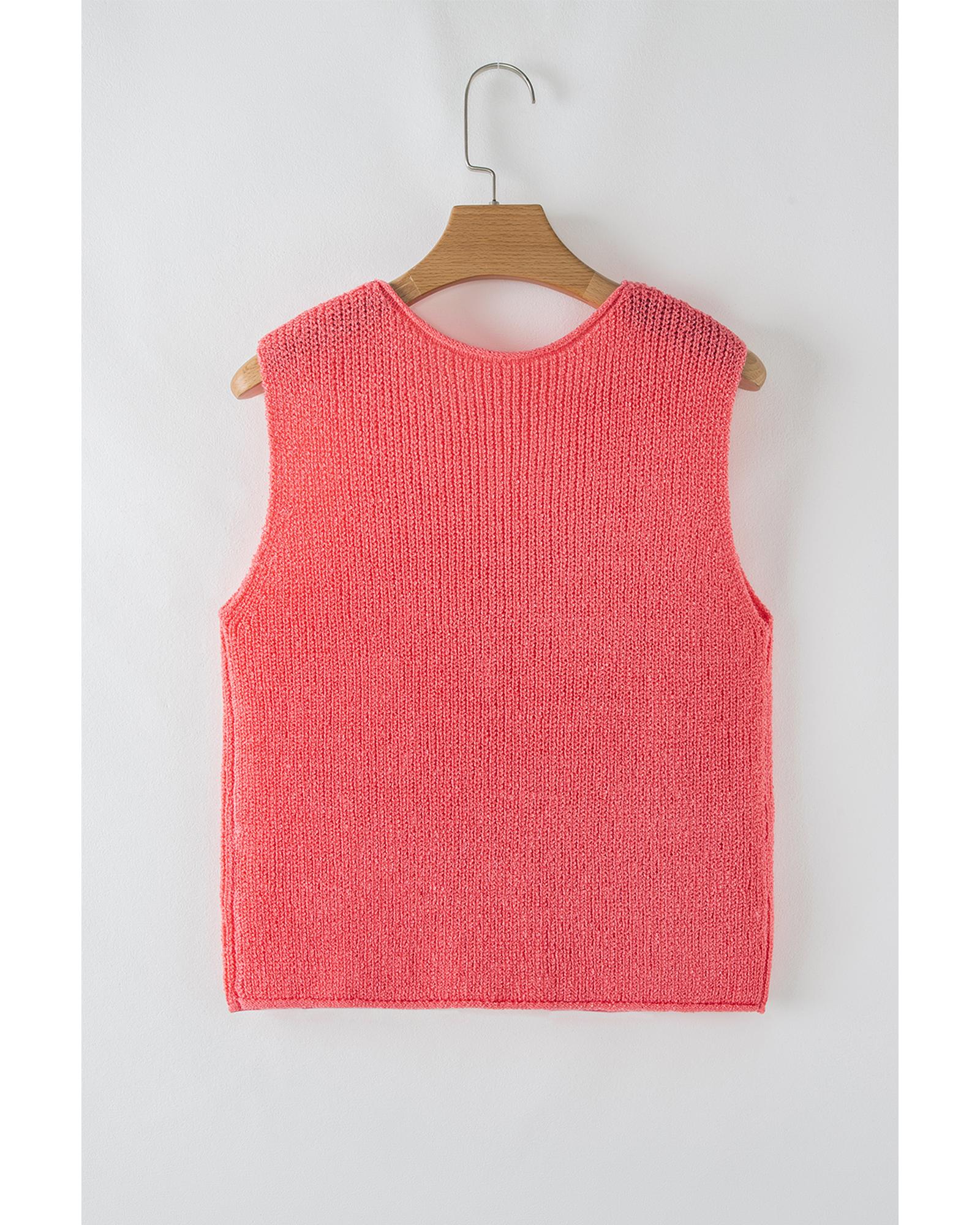 Tomato Red Lace-up Front V Neck Sweater Vest – XL