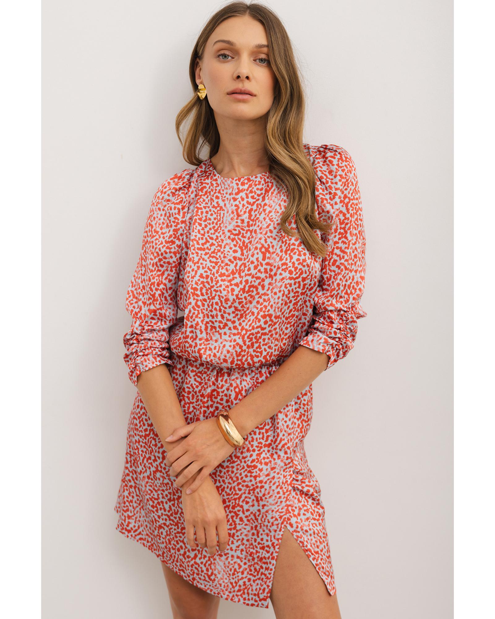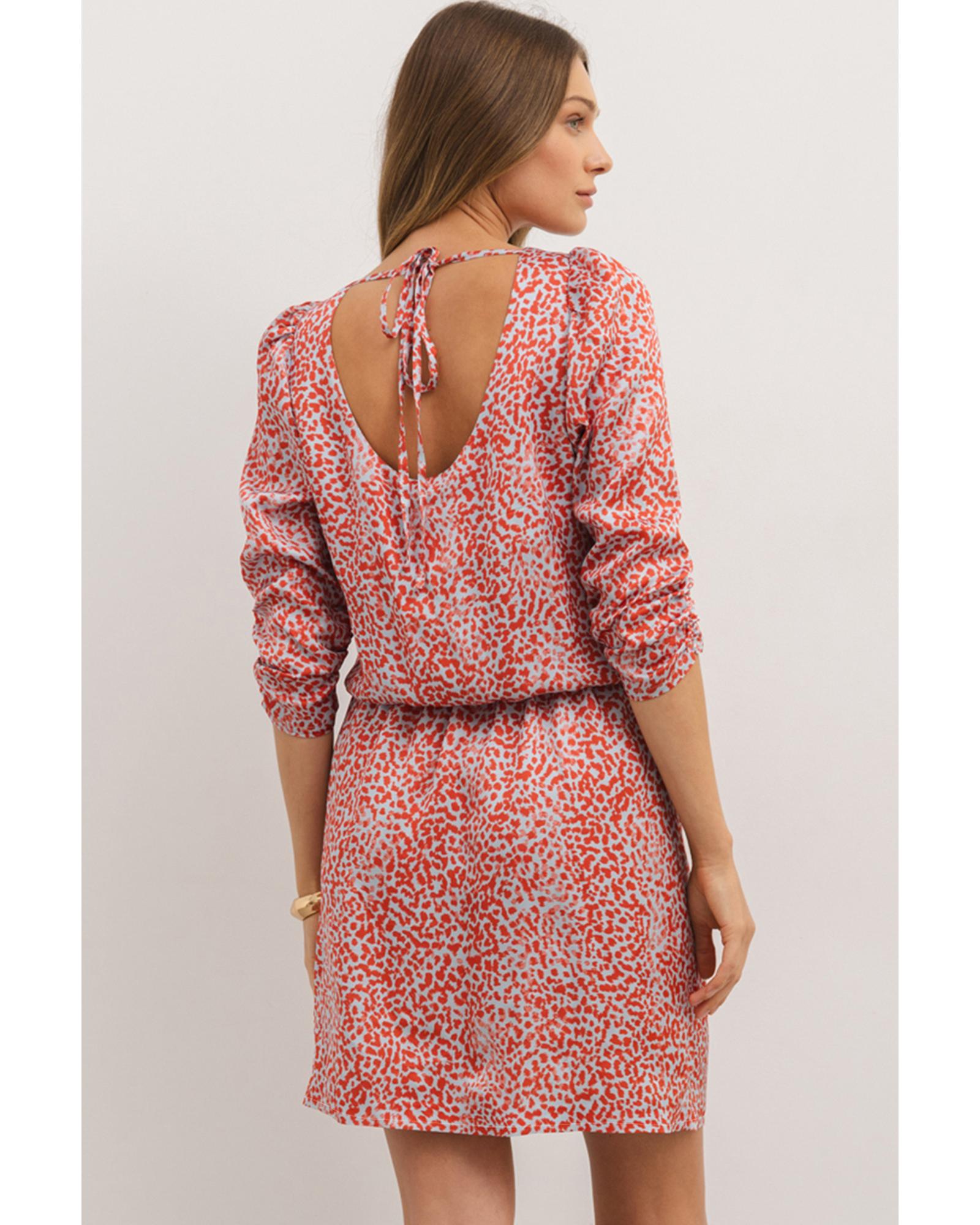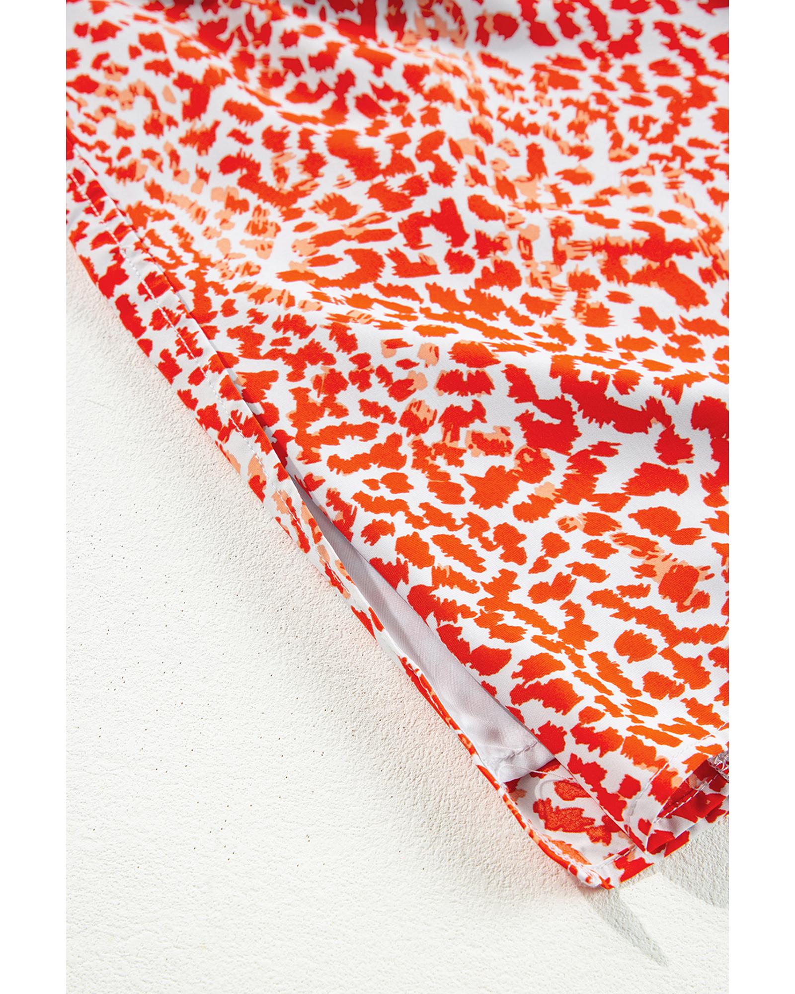 Tomato Red Leopard Print Long Sleeve Hollowed Back Split Mini Dress – XL