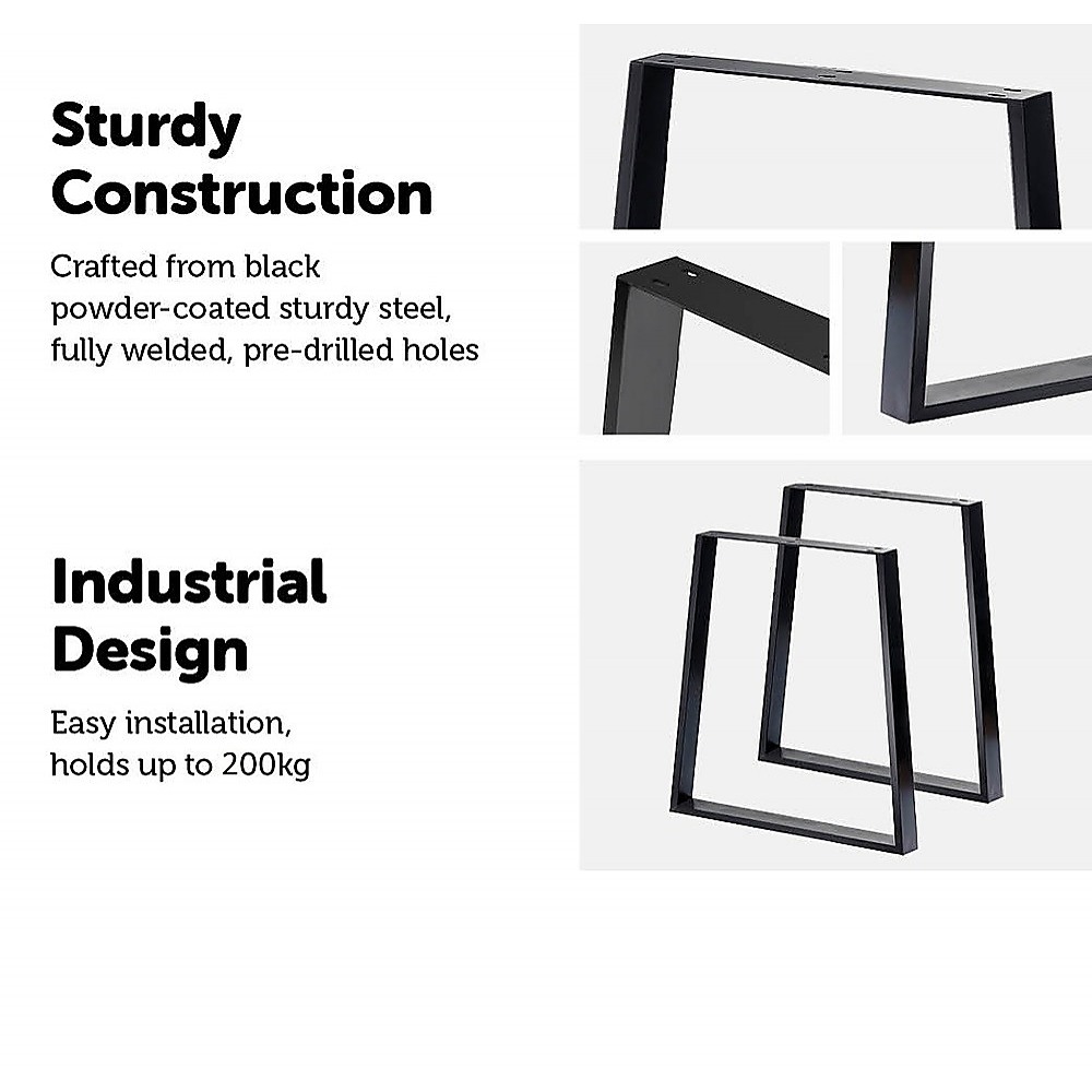 Manufactured from 75-mm sturdy steel tubes, these legs can support tables or benches up to 200 kilogrammes. Installation is easy. They're pre-welded and have pre-drilled screw holes, so you'll have your gorgeous new table up in no time. Order a set of these gorgeous trapezium table legs today.