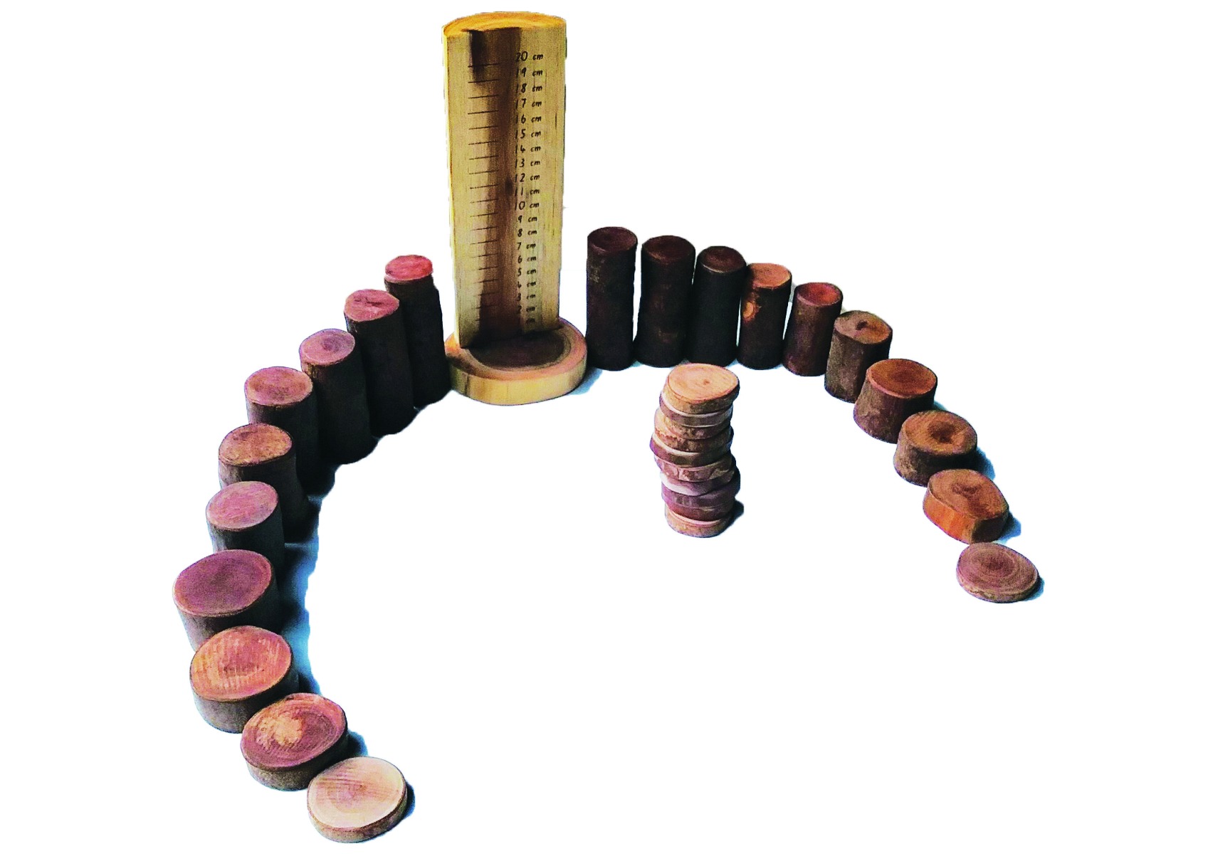 Beautiful sets of natural tree blocks designed for children to learn mathematics. The set includes 30 wooden tree blocks from 1 cm to 10 cm.
