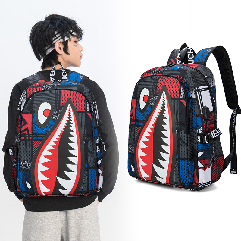 Trendsetter Shark Mouth Print Backpack – Lightweight & Breathable School Bag
