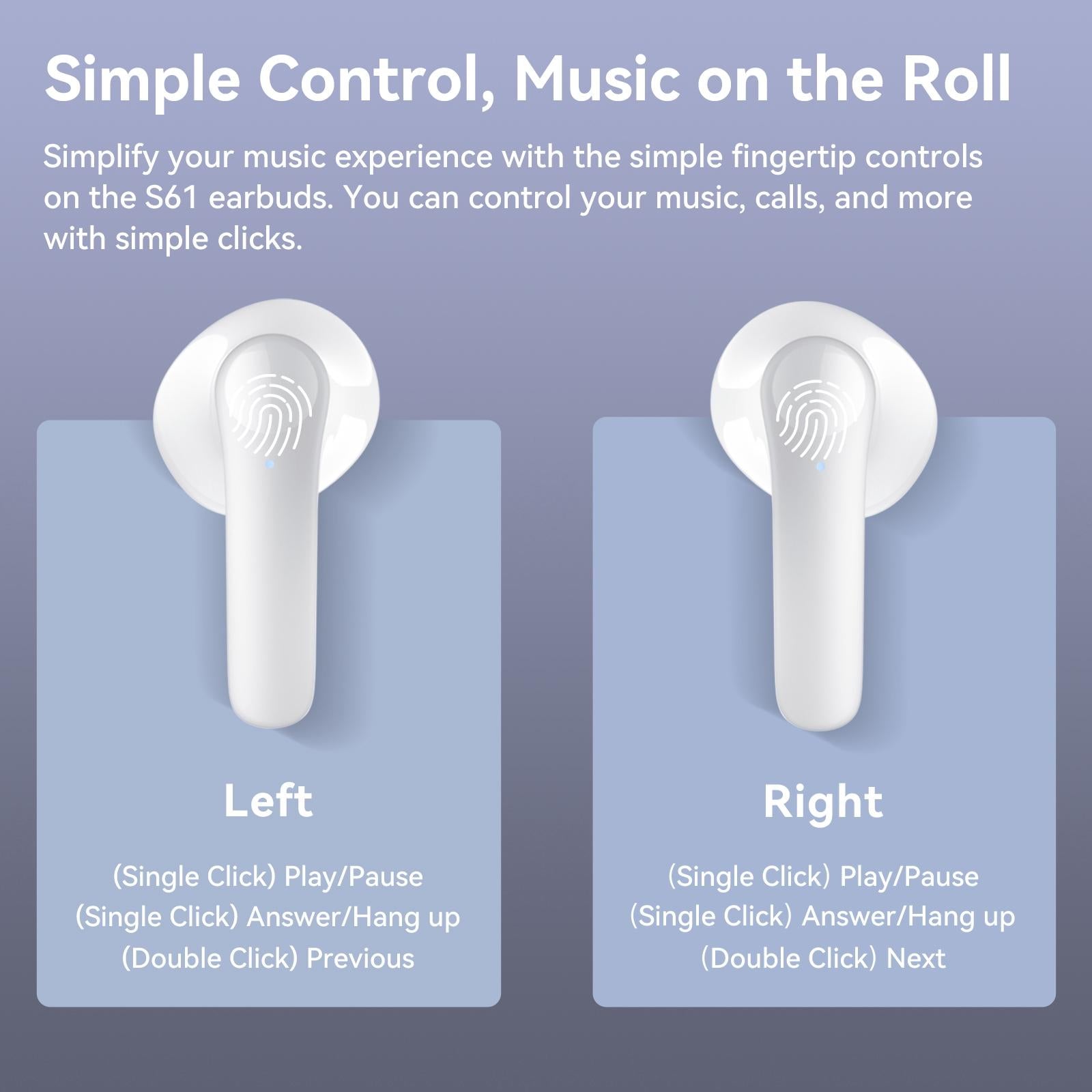 True Wireless Stereo Bluetooth Earphones – S61 – White