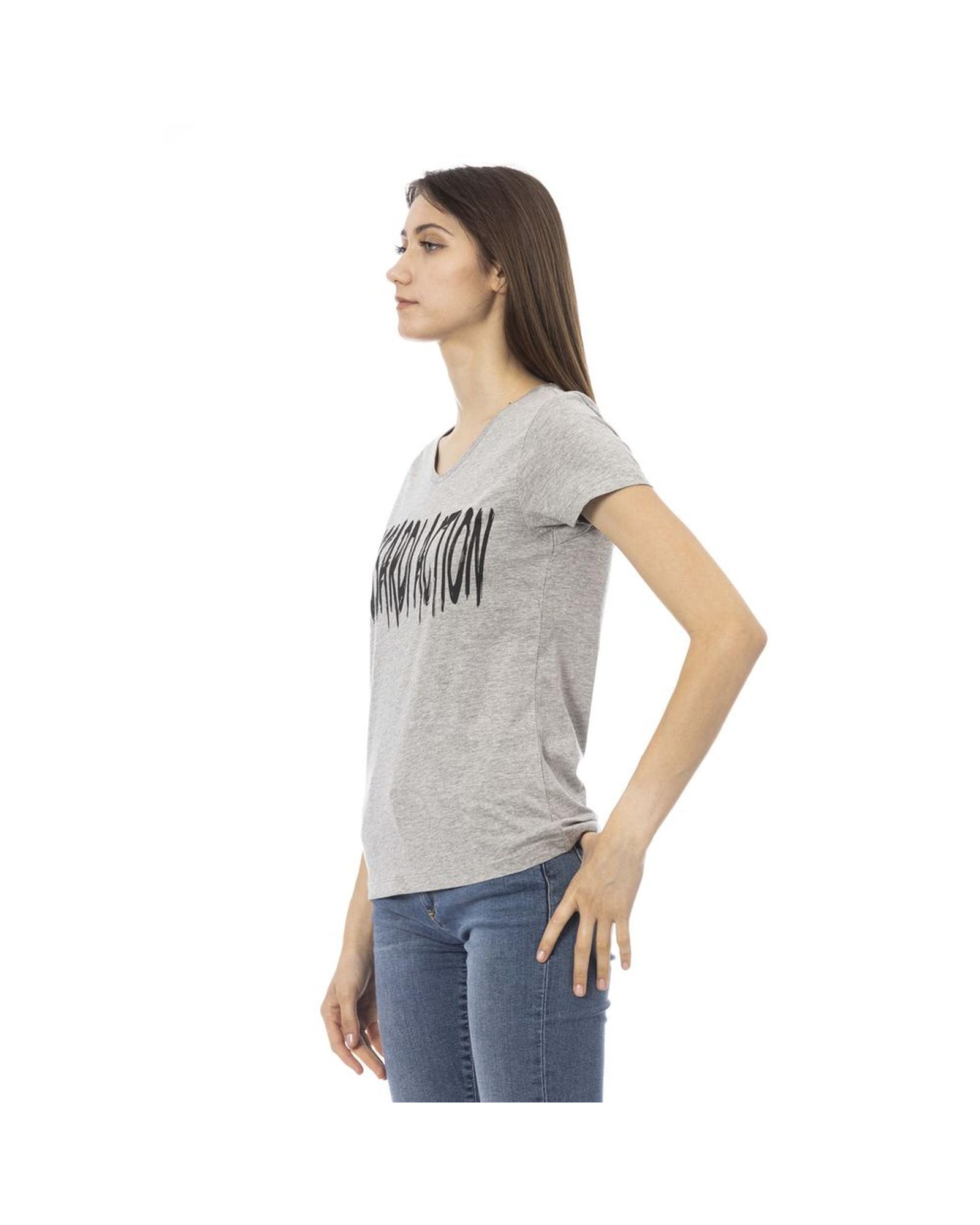 Trussardi Action Women’s Elegant Gray V-Neck Tee with Chic Print – L