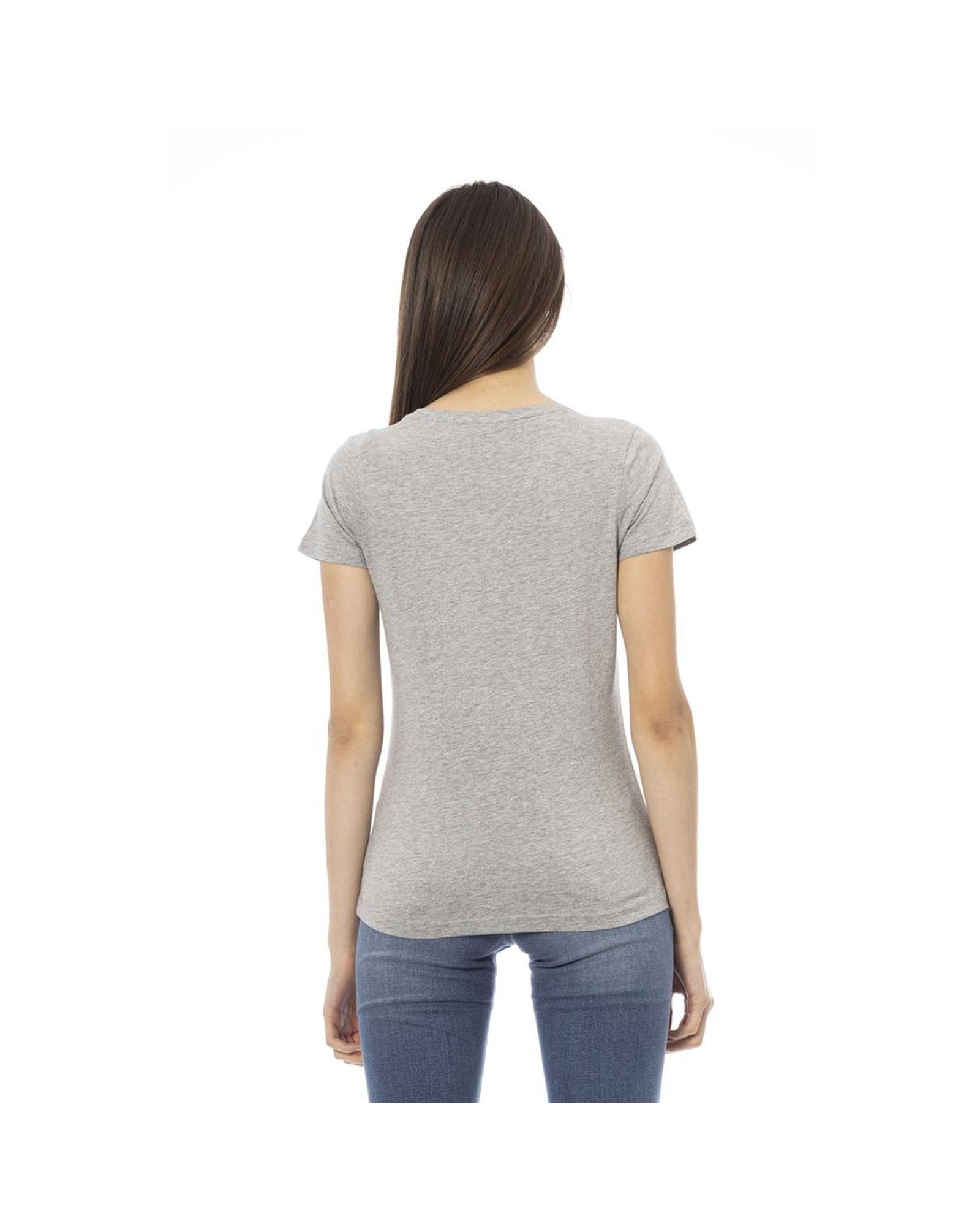 Trussardi Action Women's Elegant Gray V-Neck Tee with Chic Print - M