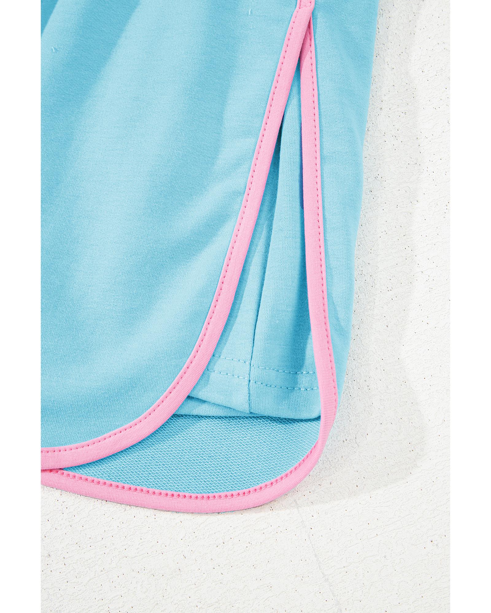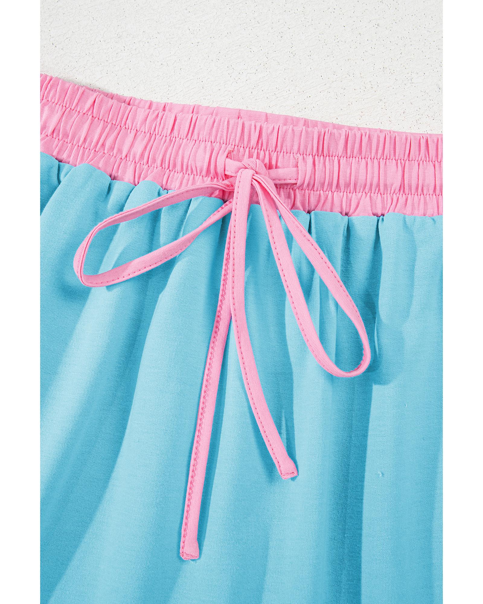 Turquoise Colorblock Edge Drop Shoulder T Shirt and Skirt 2Pcs Set – M
