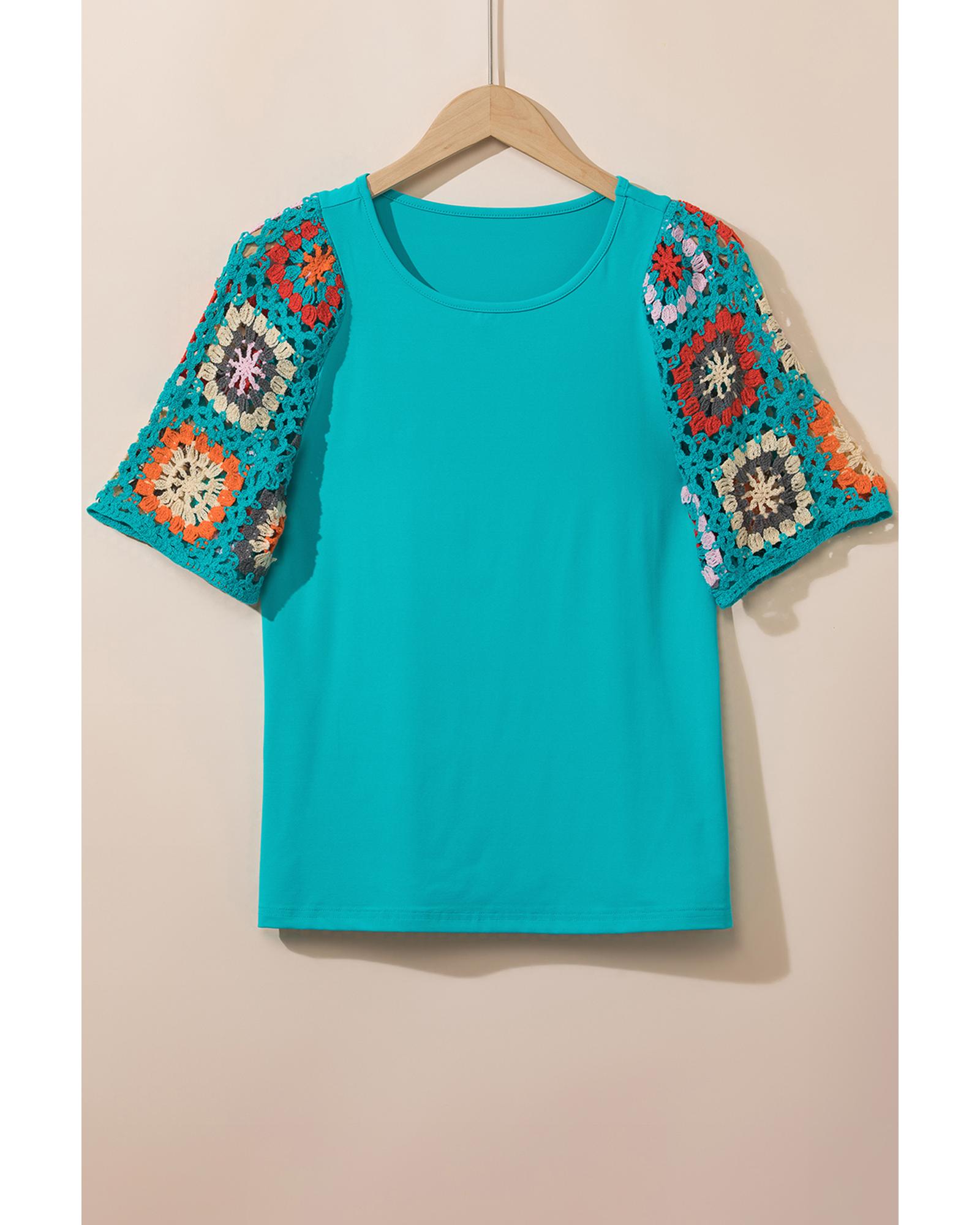 Blue Ruffle Off Shoulder Flounce Sleeve Floral Blouse - M