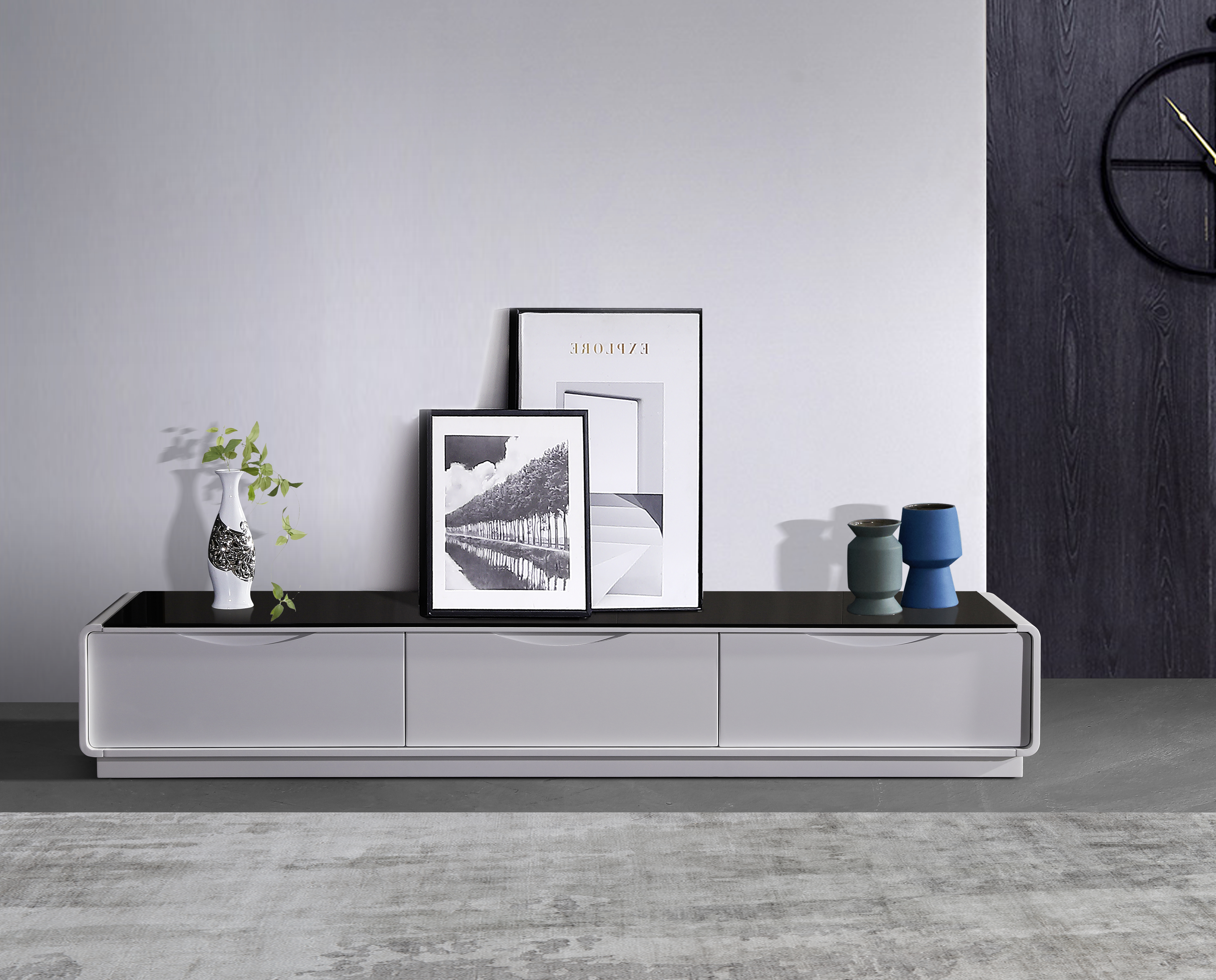 TV Cabinet with 3 Storage Drawers With High Glossy Assembled Entertainment Unit in Black & White colour