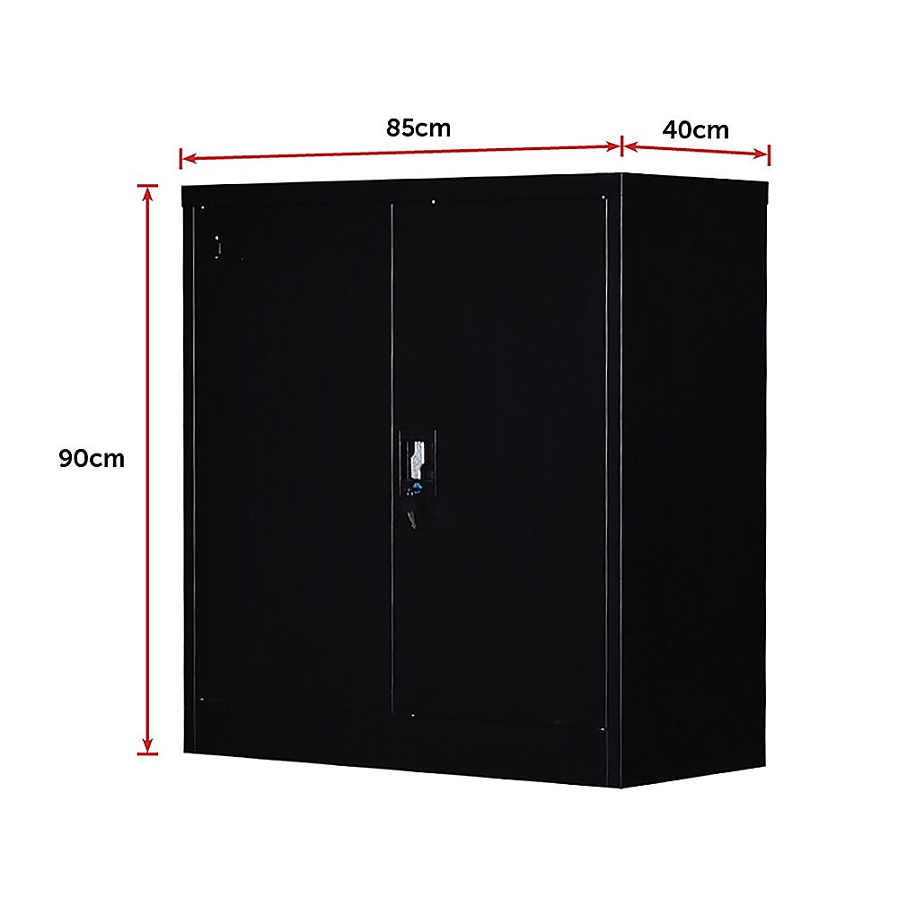 The cabinet is constructed with solid cold-rolled steel plate for excellent sturdiness and durability, not to mention an attractive look. The steel is also powder-coated to resist corrosion. The cabinet measures 90 x 85 x 40 cm, and the maximum recommended weight capacity is approximately 40kg per shelf.. Privacy and security are assured with a simple lock and key design on the double doors. The lock comes with 2 keys.