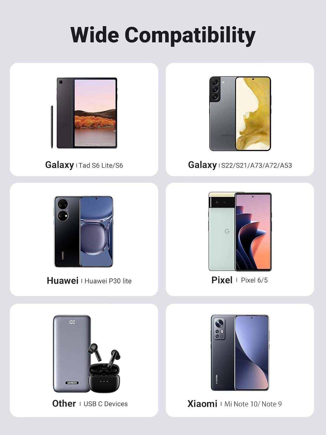 The USB charging cable can quickly charge and transfer data at a high speed, and is compatible with USB-C devices such as iPhone 15 Pro Max/15 Pro/15 Plus/15, Samsung Galaxy S22 S23 Note 20 10, PS5 DualSense controller, Samsung A50 A30 A20 A40 A60, Galaxy Tab S3 9.7, iPad Pro 11, 2018 iPad Pro 12.9, iPad mini 6, Oculus Quest 2, Android Auto, etc.