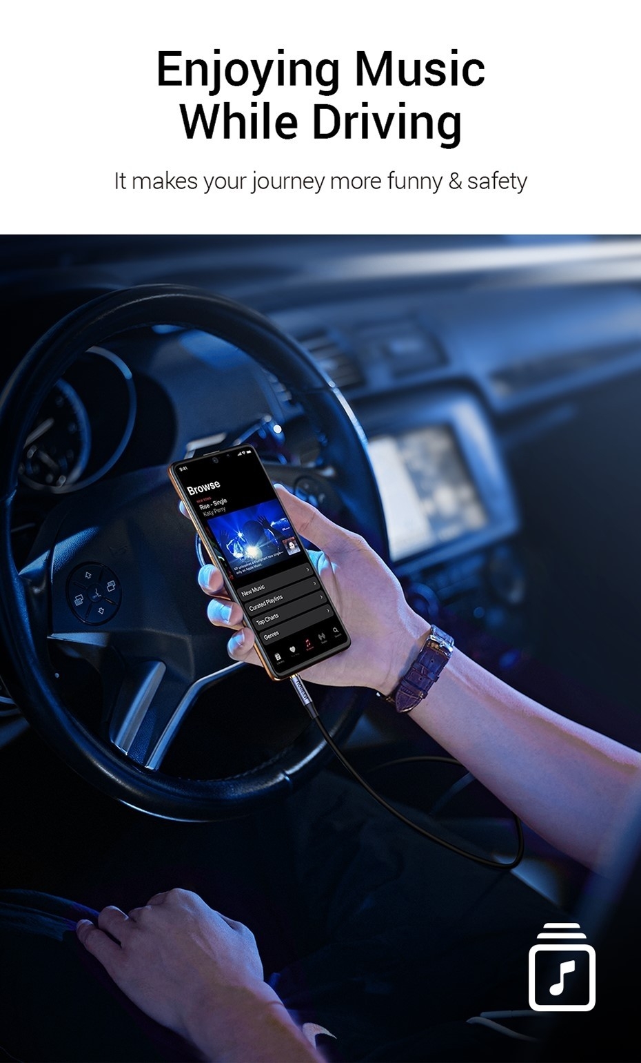 UGREEN Headphone Jack to Headphone Jack Cable is built to last forever. Combined evolved nylon braided jacket with reinforced wire joints, the Car Aux Cable passes 10000+ bend tests and can withstand any twist, tug, and tangle. Aluminum alloy shells resist corrosion and ensure optimum sound quality. Oxygen-free copper provides maximum conductivity and durability.