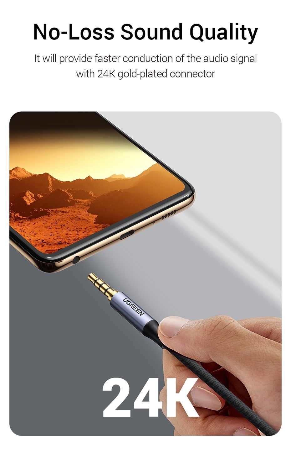 UGREEN Headphone Audio Mic Cable is well manufactured and delivers outstanding performance. Combined silver-plated copper conductor with 3-lay robust shielding(tinned copper, TPE jacket, nylon braid), the Headphone Jack to Jack Cable endues no-loss, noise-free, high-fidelity audio experience. 24K gold-plated plugs provide faster conduction of the audio signal and ensure stable & undelayed audio transmission.