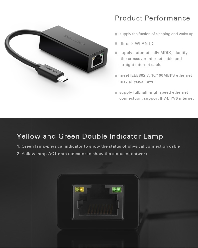 UGREEN 30287 USB-C 10/100Mbps Ethernet Adapter