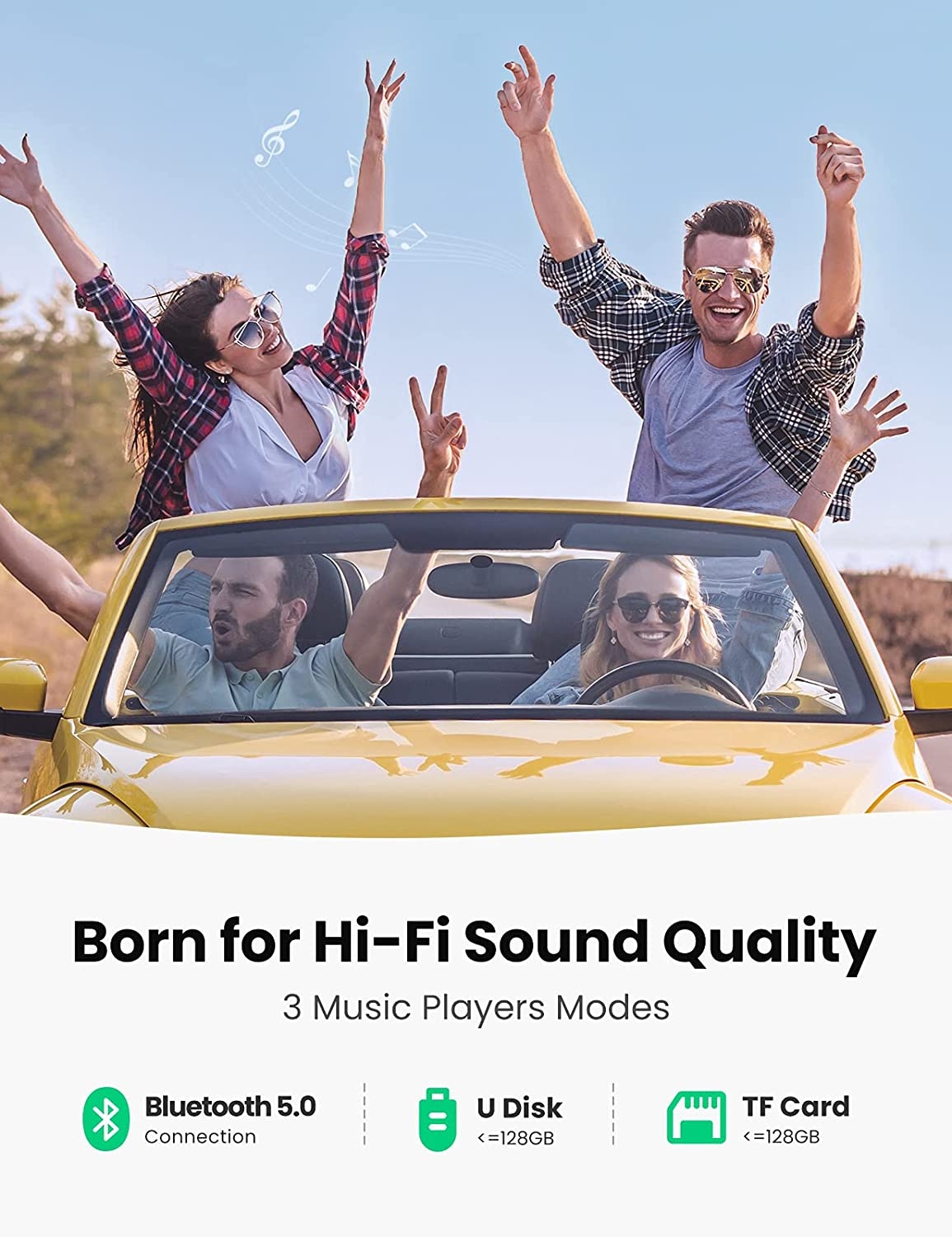 Insert a USB flash driver (64G)which contains MP3 files into the “”RIGHT”” USB port and enjoys it. If that’s not enough, it can also support your playlist with the full range of audible frequencies with no distortions of the original signal from your MP3, LG, Samsung, Android Smartphones and more Bluetooth enabled devices. It also supports power memory operation, the player will memory the current song when it shuffles power off.