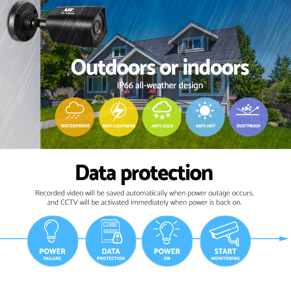 UL-tech CCTV Security System 4CH DVR 4 Cameras 2TB Hard Drive