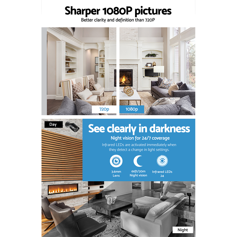 UL-tech CCTV Security System 8CH DVR 4 Cameras 2TB Hard Drive