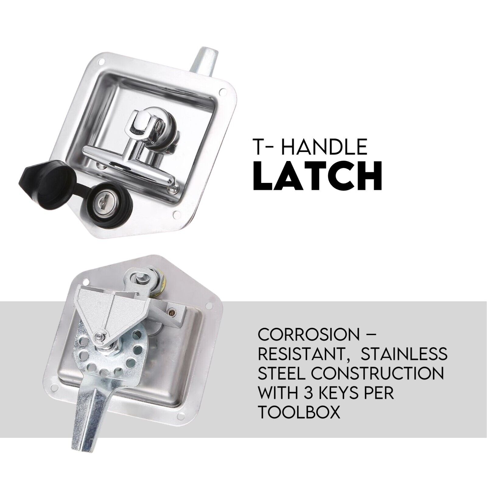 Similar to its flat plate under tray toolbox and plate aluminium flat counterpart, it is built with super-heavy duty steel. Secure this black powder coated toolbox on the underbody of your truck or UTE for maximum strength and secure extra storage space.
