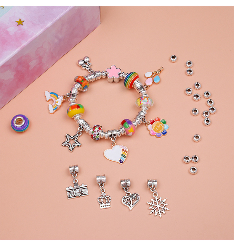 - Includes: 3 bracelet chains (16 cm), 3 strings, 20 crystal beads, 20 charms, 20 large beads, gift box