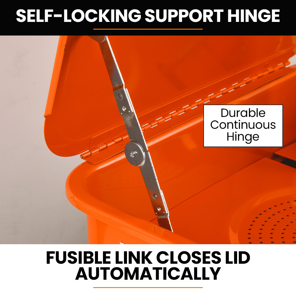- Lid support is on a fusible link and will auto-close to extinguish flames
