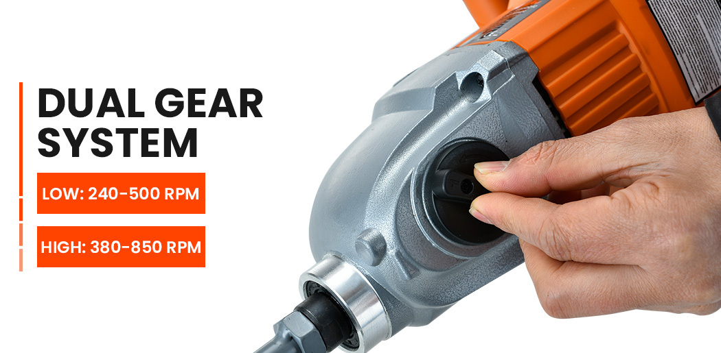 • Speed Frequency: Gear 1 = 240-500rpm, Gear 2= 380-850rpm