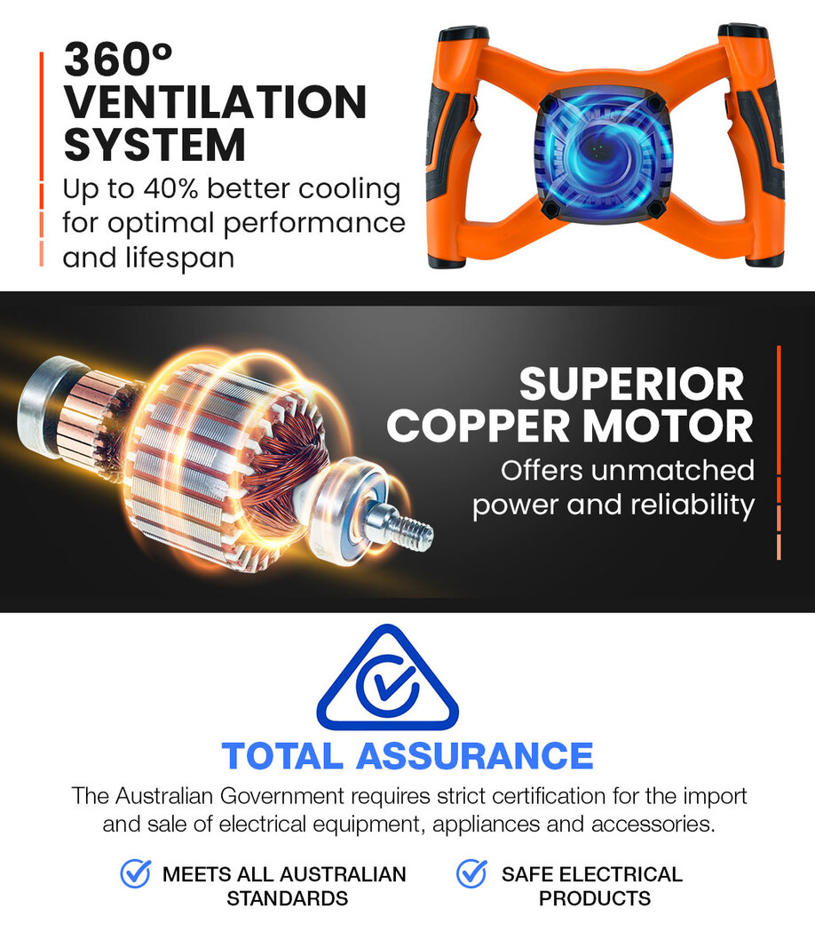 You’ll enjoy continuous fatigue-free operation thanks to the lightweight design at just 5kg, and the ergonomically contoured dual soft grip handle design. Unlike other models, the tall position of the handles of the UNIMAC Mixer provides superior reach to ensure you have better posture. Plus, it adds increased stability so that with the UNIMAC UM-PX9 you’ll knock over the job smoothly!