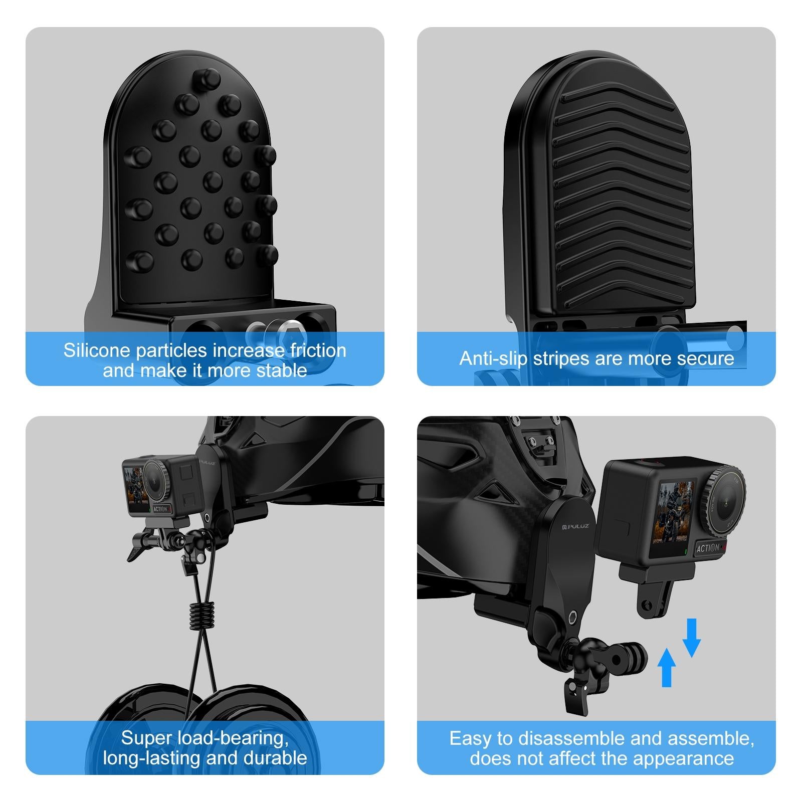 • The material is nylon fiber-reinforced plastic, which is super load-bearing and durable; the silicone pad will not damage the paint surface of the helmet;