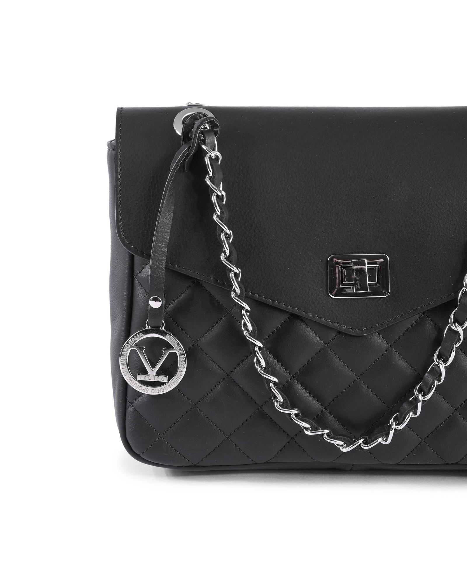 V Italia Womens Quilted Leather Crossbody Shoulder Bag with Chain Strap Black – One Size