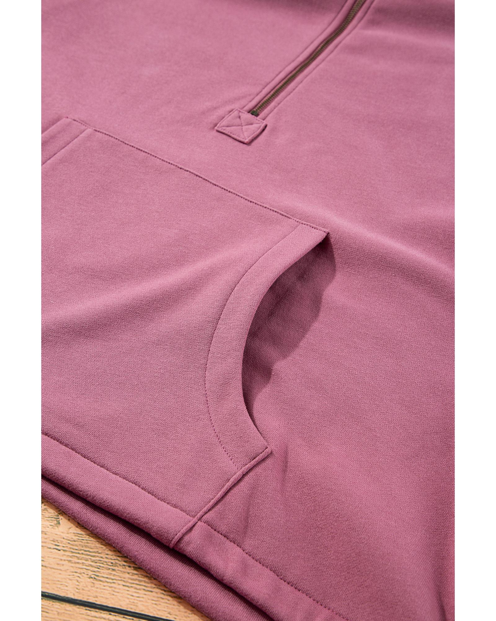 Valerian Fleece Lined Half Zipper Kangaroo Pockets Loose Hoodie – L