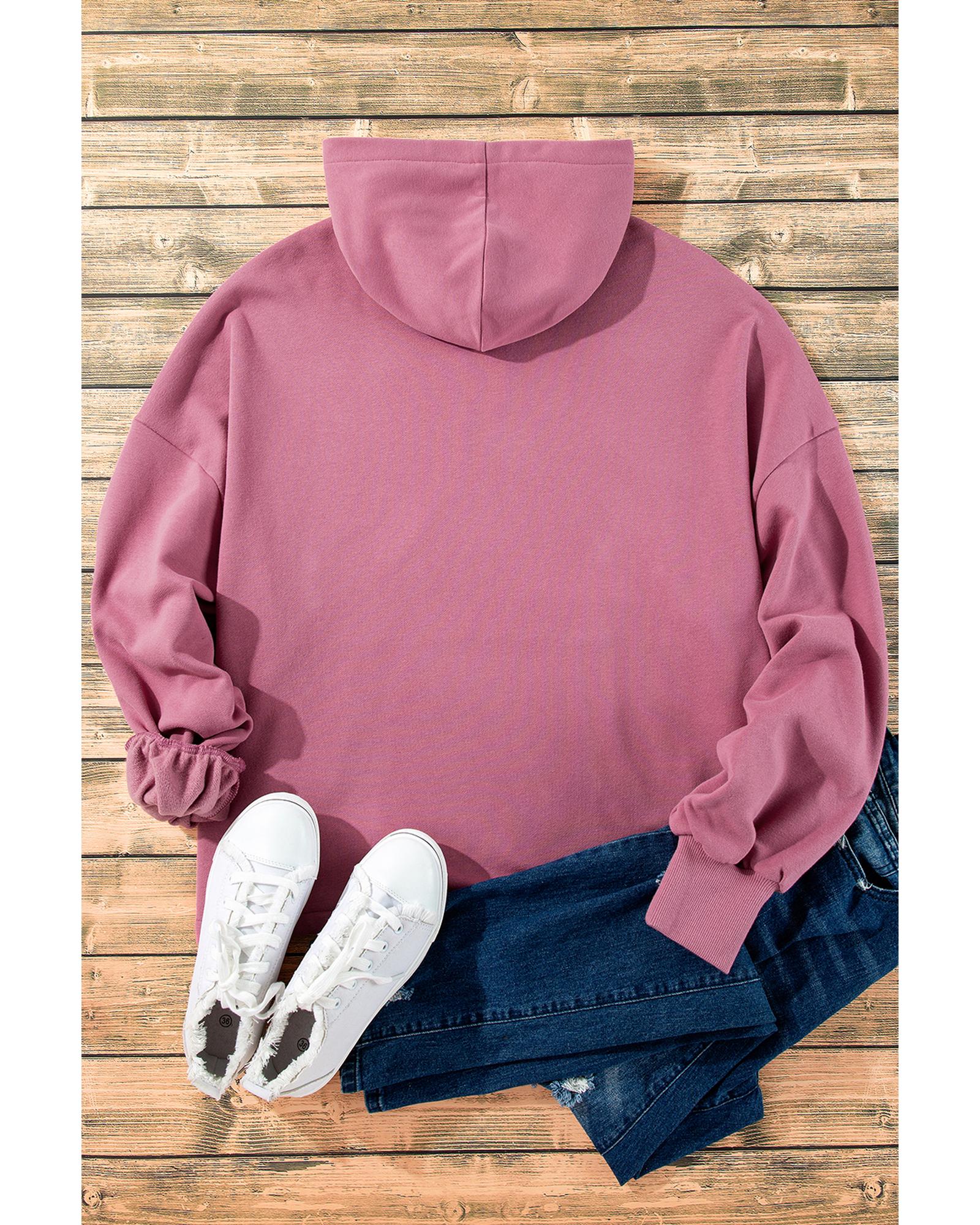 Valerian Fleece Lined Half Zipper Kangaroo Pockets Loose Hoodie – M