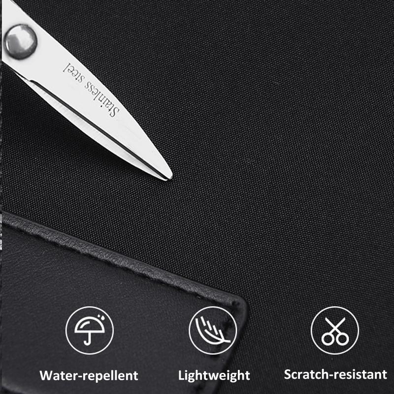 • Scratch-resistant and water-repellent fabric for added protection