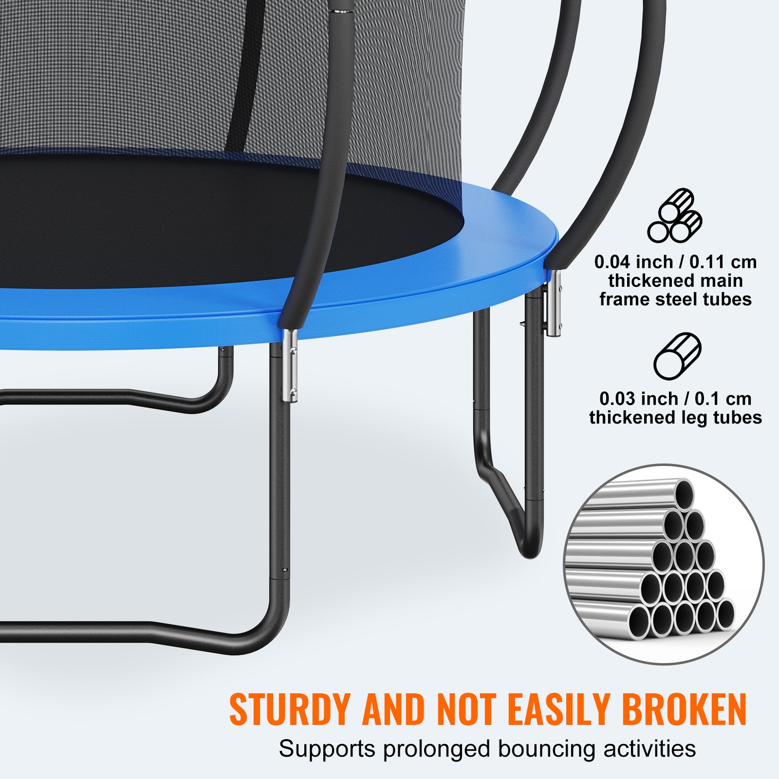 VEVOR 10FT Trampoline, 330 lbs Trampoline with Enclosure Net, Ladder, and Curved Pole, Heavy Duty Trampoline with Jumping Mat and Spring Cover Padding, Outdoor Recreational Trampolines for Kids Adults