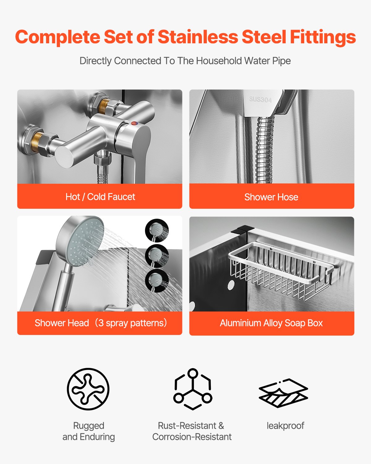 The rounded seamless welding provides better sealing and makes cleaning more convenient. The dog grooming tub is featuring hot and cold faucets, a dual-control showerhead, and a soap holder, this design simplifies and streamlines the bathing process. The PE water filter board provides a non-slip draining surface, and the included duckbill buckle stops pets from accidentally triggering the door during bath time, keeping them securely inside