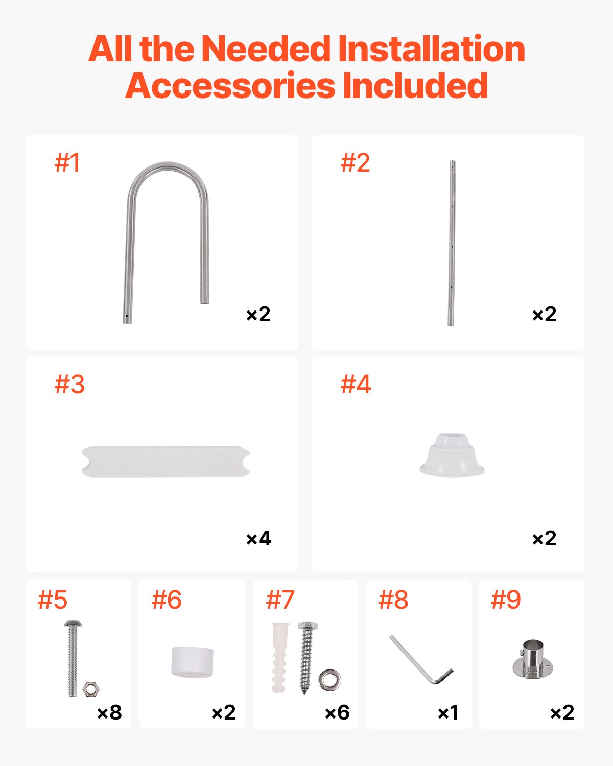 VEVOR 4-Step Stainless Steel Pool Ladder of 2 Handrail for 1371.6 mm Decked Pool
