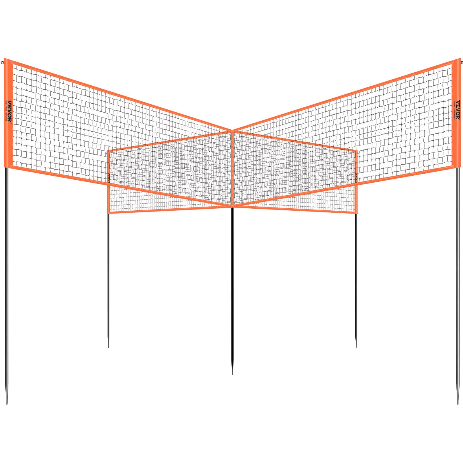 VEVOR 4-Way Volleyball Net, Adjustable Height Badminton Net Set for Backyard Beach Lawn, Outdoor Portable Volleyball Net with Carrying Bag, 4 Square Quick Assemble Game Set For Kids And Adults