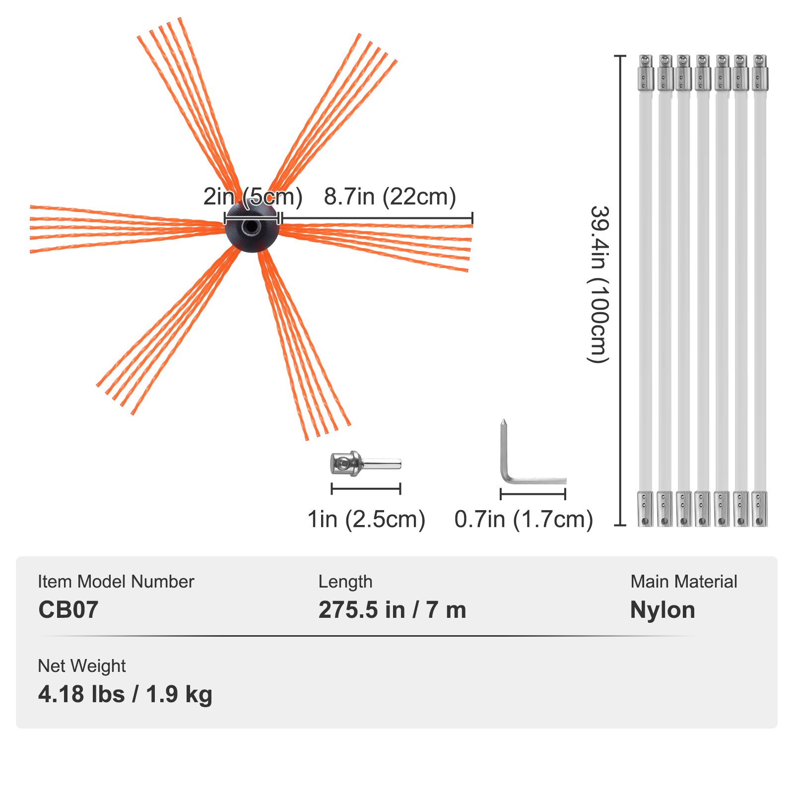 The nylon rod is constructed from stable molecular structure, elastic, and break-resistant reinforced fibers. It can bend at angles greater than 90 degrees, providing the flexibility needed for easy use.