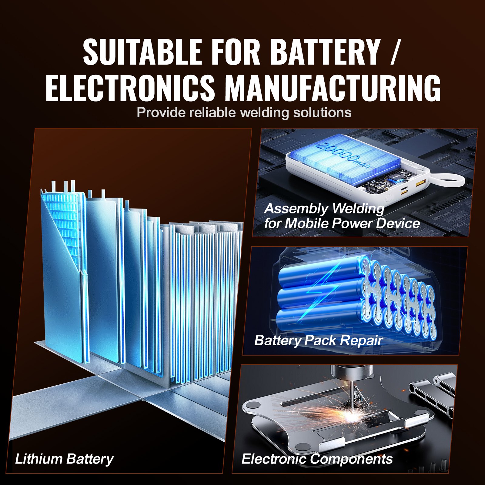 VEVOR 788H battery pulse spot welder facilitates precise welding for 0.15mm pure nickel stripes, perfect for building rechargeable lithium battery packs like 18650 and 14500, as well as handling pure nickel, nickel-plated, and iron materials for various industrial applications.
