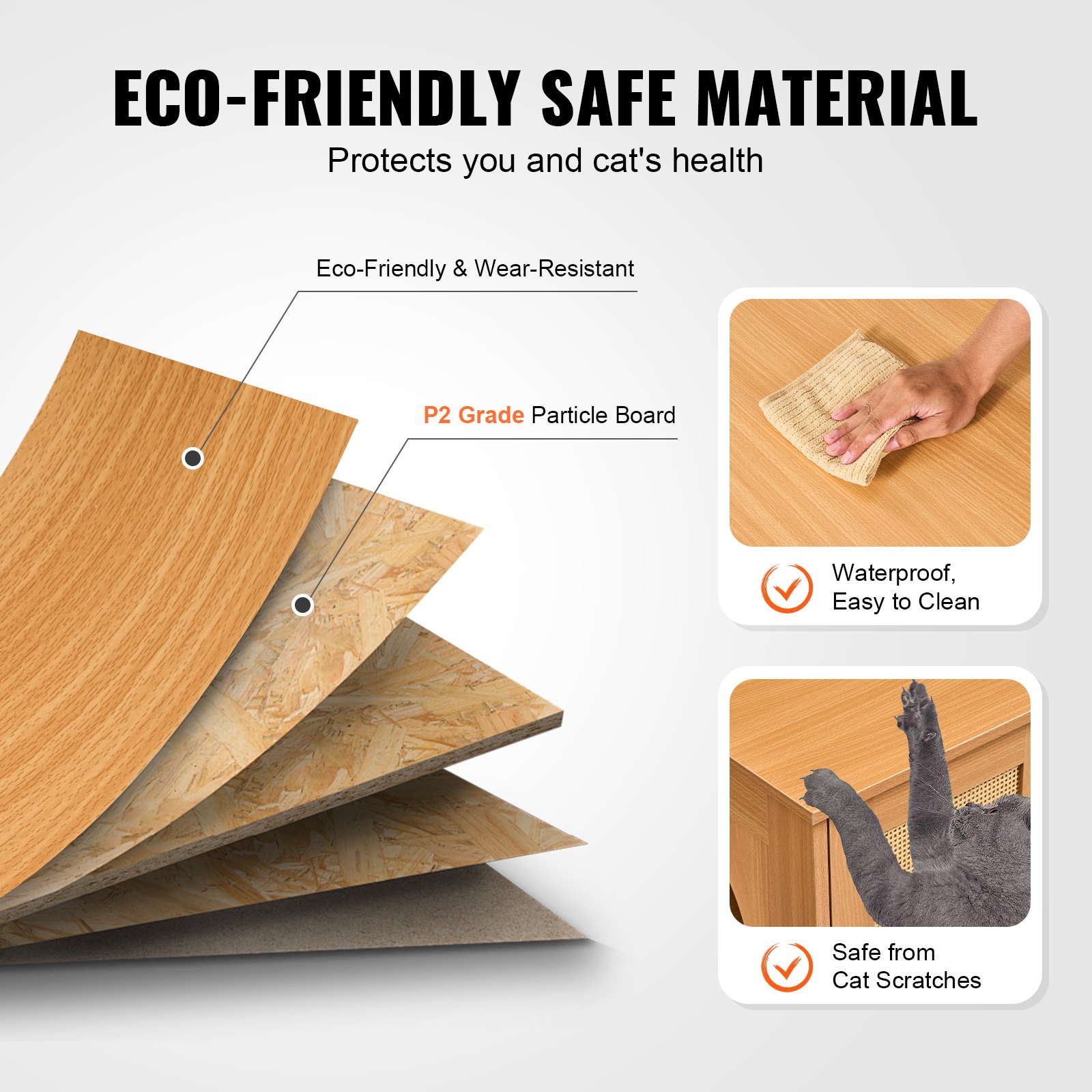 VEVOR Cat Litter Box Enclosure Wooden Litter Box Furniture Hidden for 2 Cats