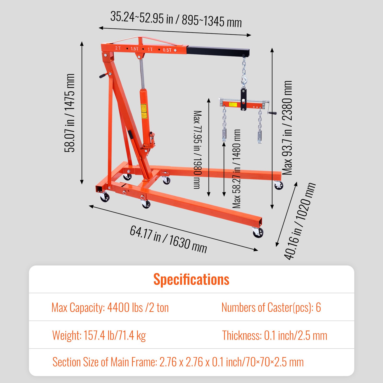 When you’re done, simply fold the engine hoist up for easy storage. Its compact design occupies minimal space, leaving your garage or workshop neat and tidy. Upgrade your repair game today with our innovative 2-in-1 engine hoist!
