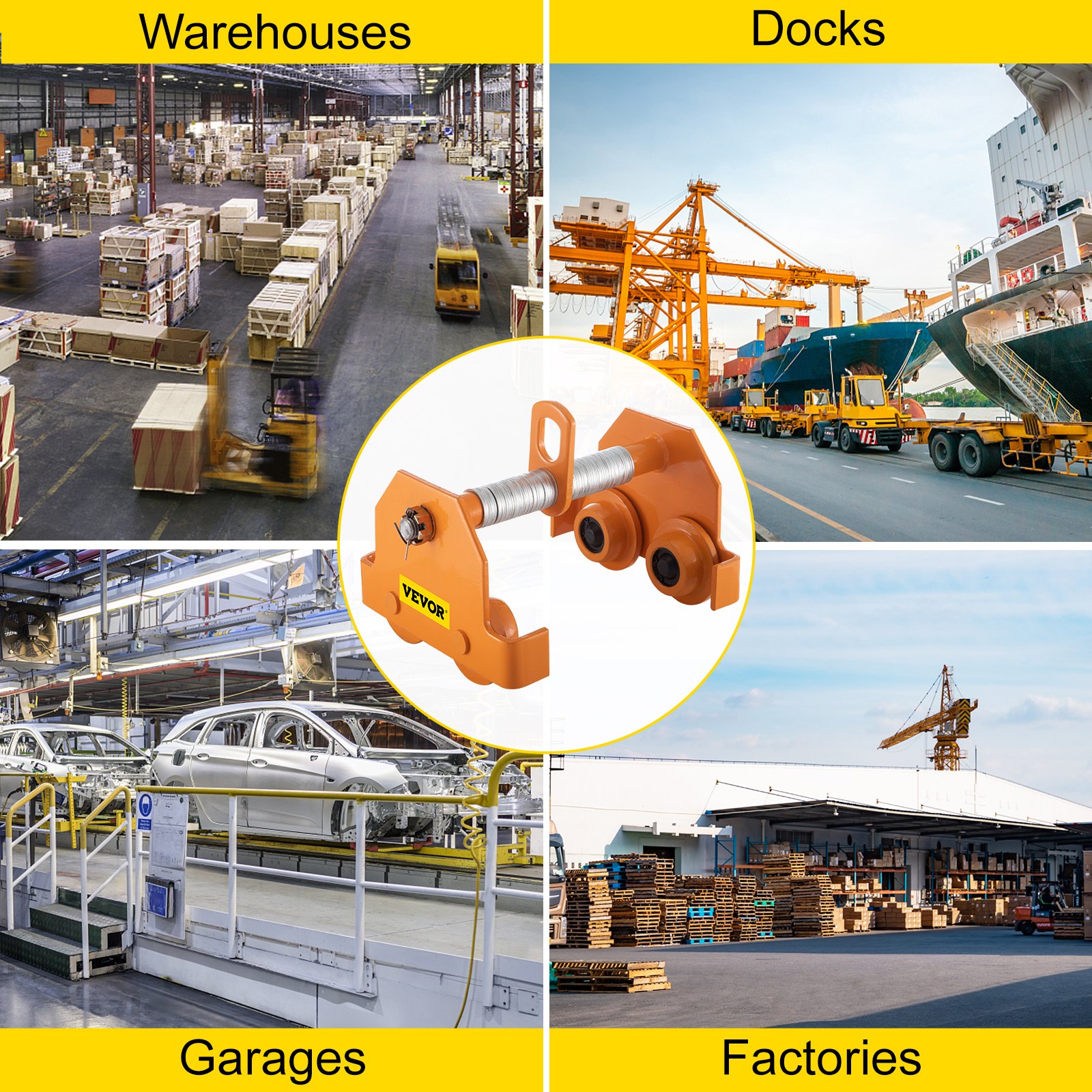 VERSATILE USE SCENARIOS – Our hoist trolley is mainly used in the mechanical equipment of infrastructure construction projects such as electric power, automobile manufacturing, highways, bridges, metallurgy, mines, slope tunnels and is an ideal material handling tool for docks, warehouses, garages, and other industrial areas.