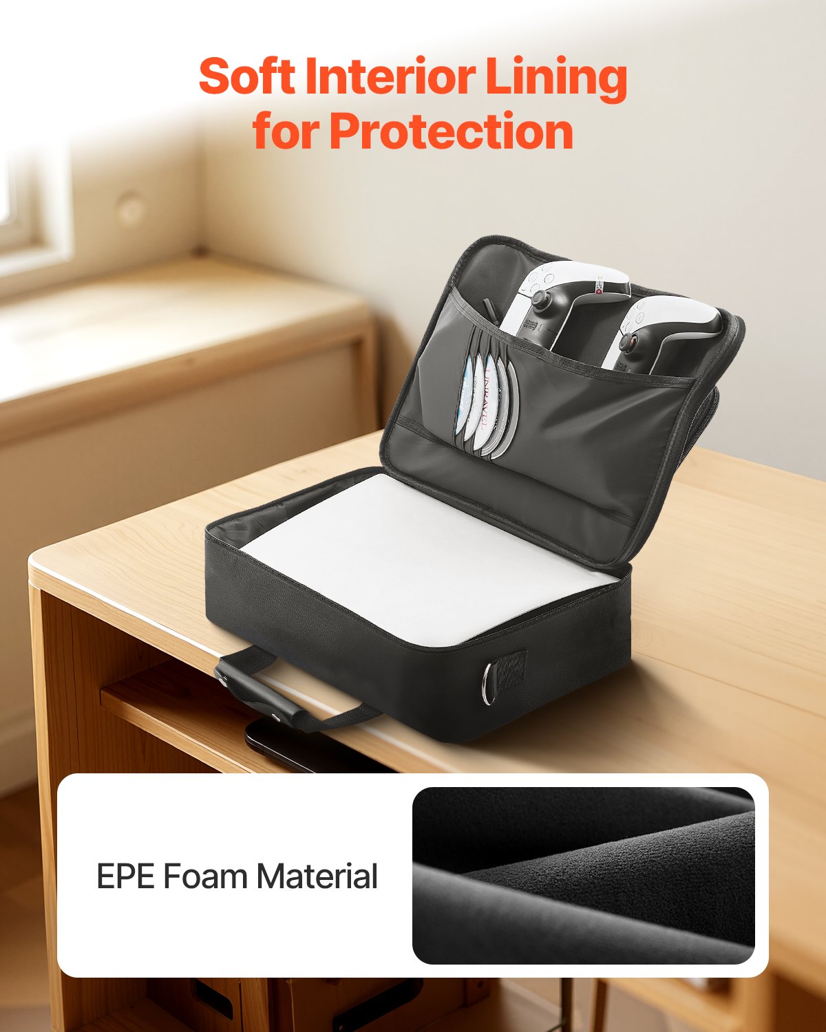 Each compartment inside the case is lined with soft fabric, offering extra protection to avoid scratches and damage to your PS5 console, controllers, and headset