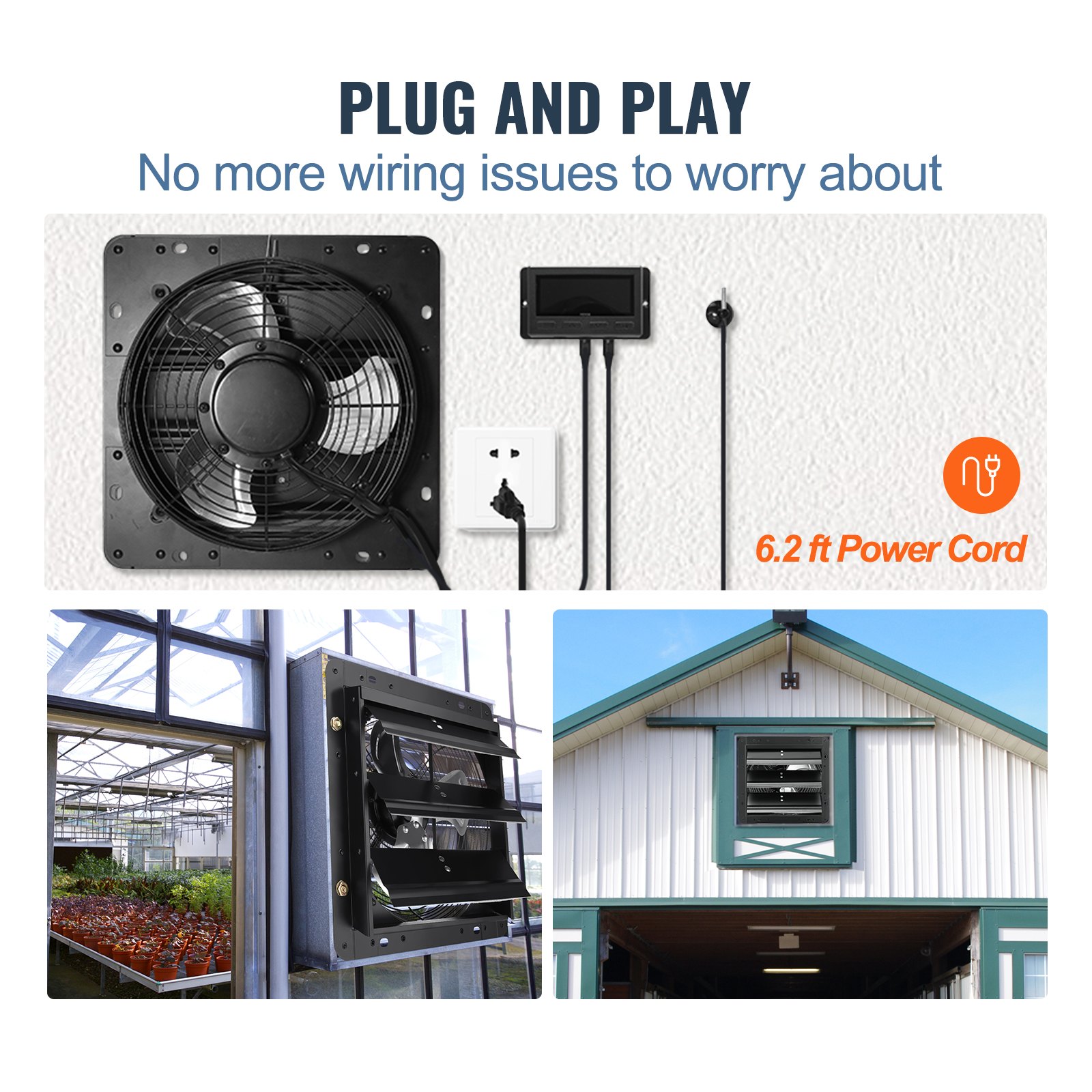 VEVOR Shutter Exhaust Fan, 254mm / 10inch with Temperature Humidity Controller, EC-motor, 843 CFM, Variable Speed Adjustable Wall Mount Attic Fan, Ventilation and Cooling for Greenhouses, Garages, Sheds