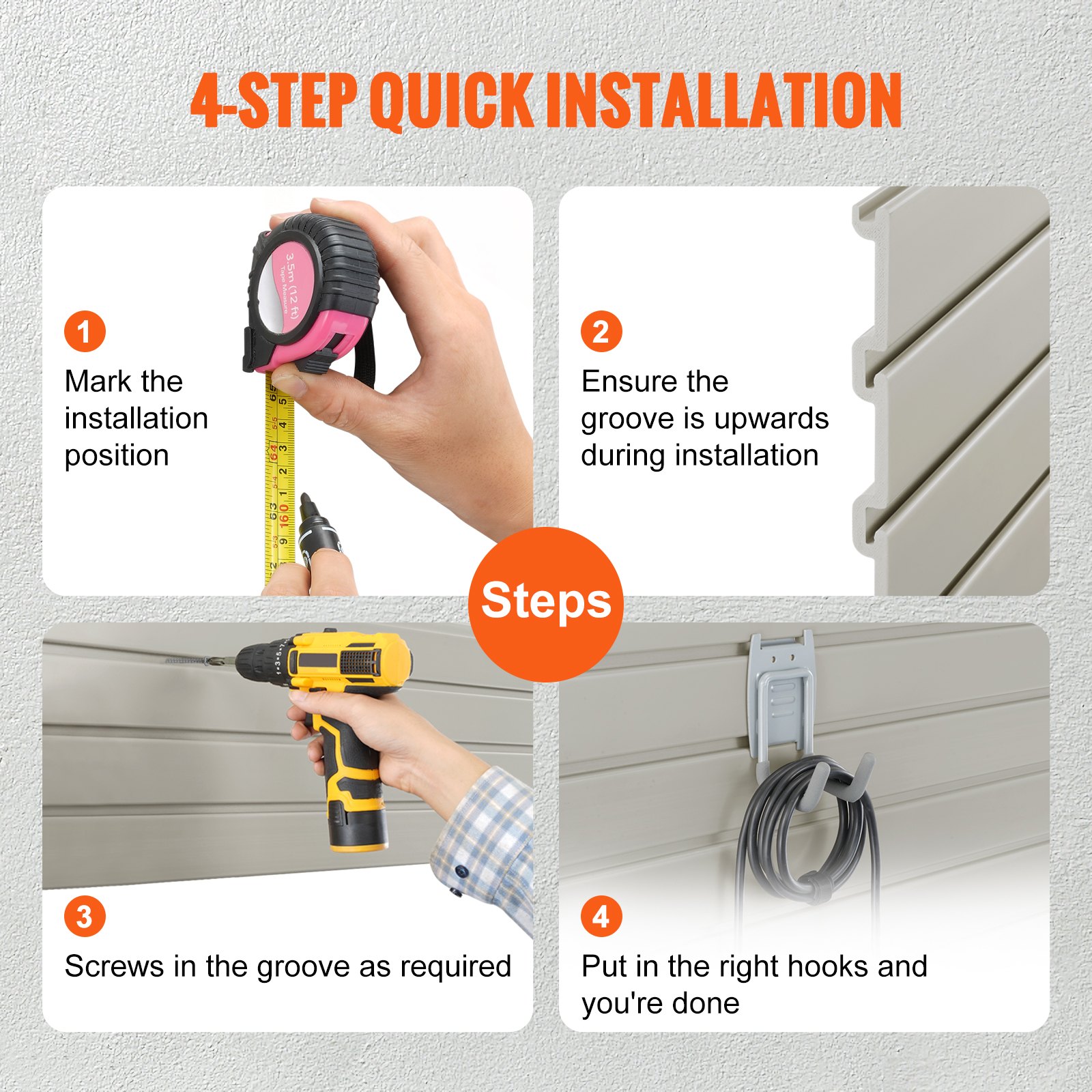 No pros are needed here! Slatwall installation is a breeze with just 4 simple steps. Mark it, mount it with the groove up, drill it, and screw it. You’ll be up and running in minutes, not hours. Get ready to transform your space without breaking a sweat.