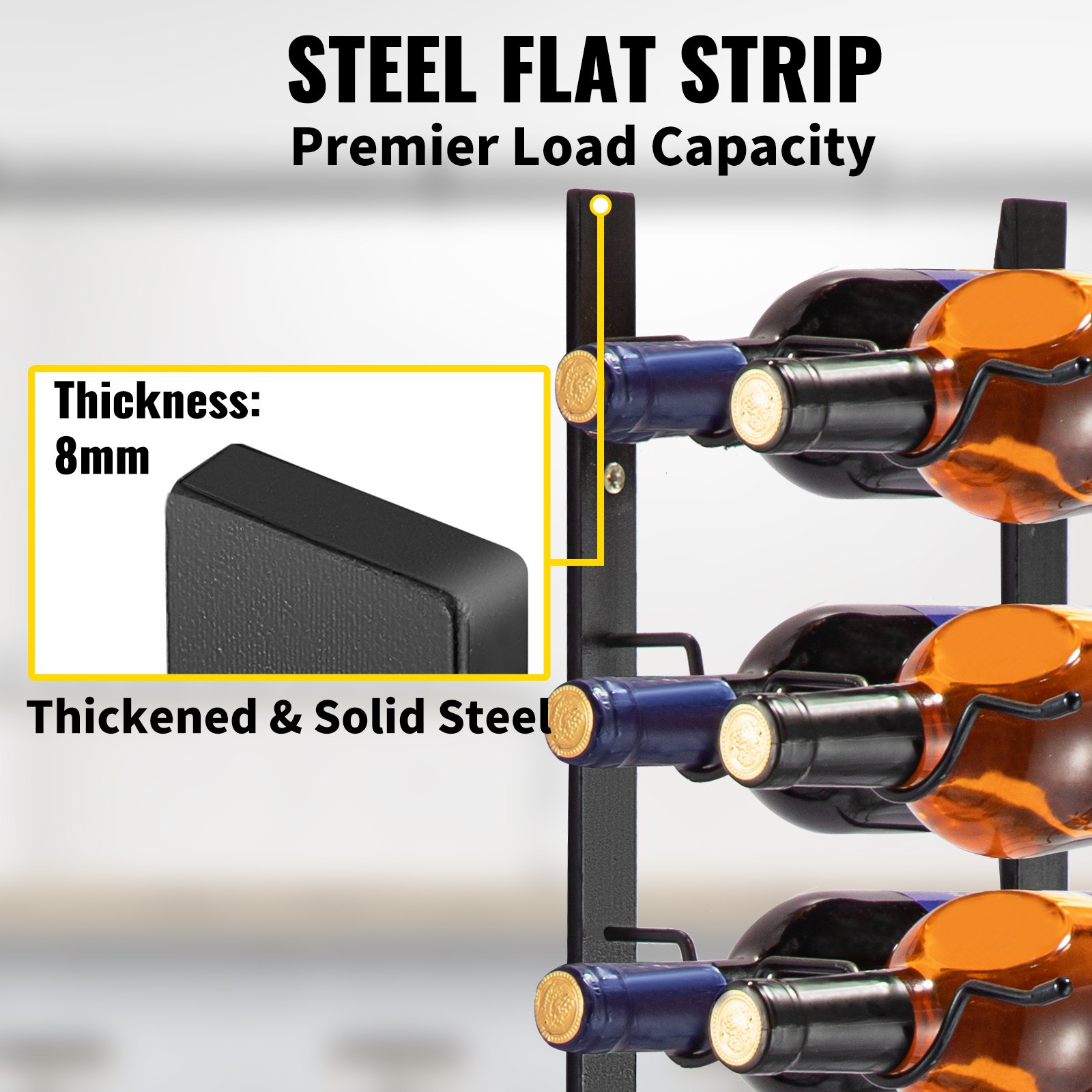 VEVOR Wall Mounted Wine Rack, 12×2 Bottles Wine Holder Towel Rack, Black Steel Vertical Wine Rack, Modern Decorative Wall Mounted Wine Bottle Holder, Forward Design Simple Storage Wall Rack 48x11x1 In