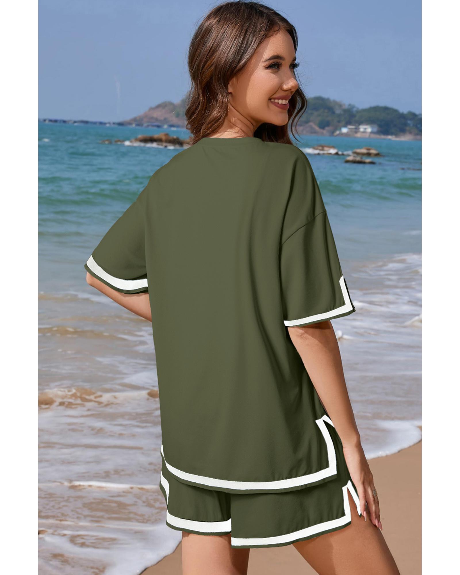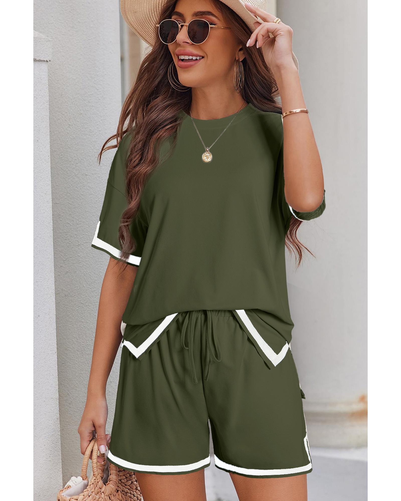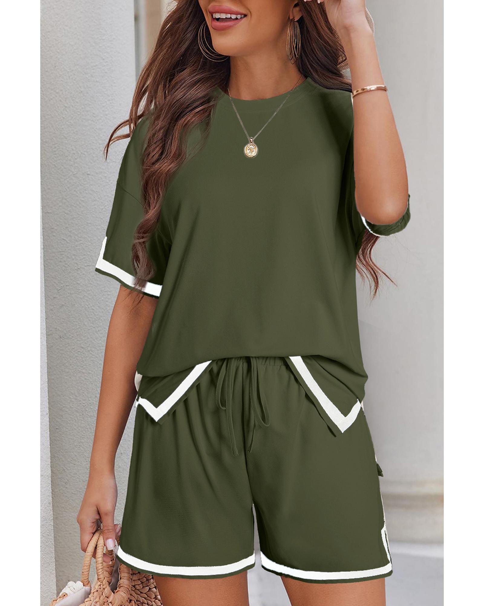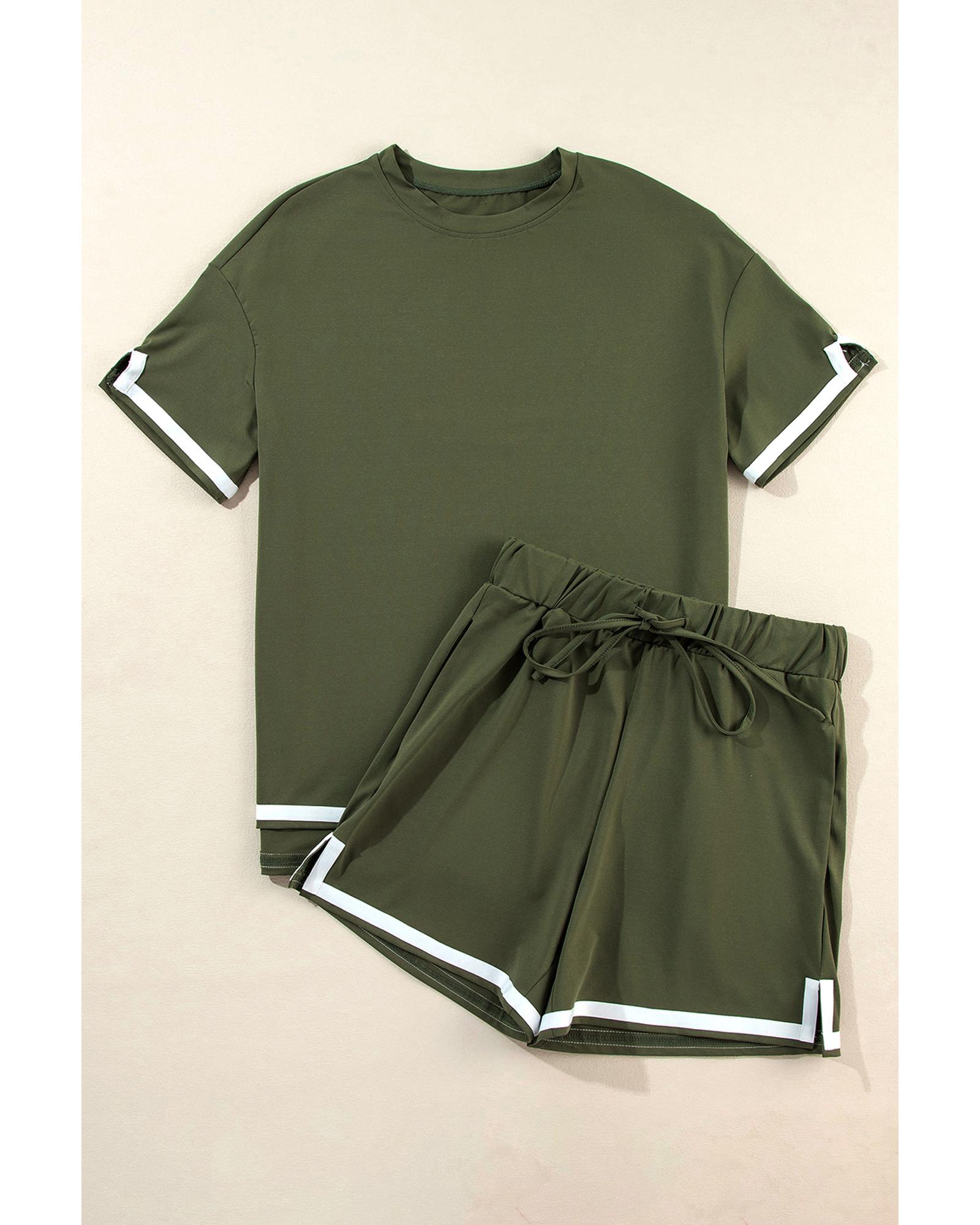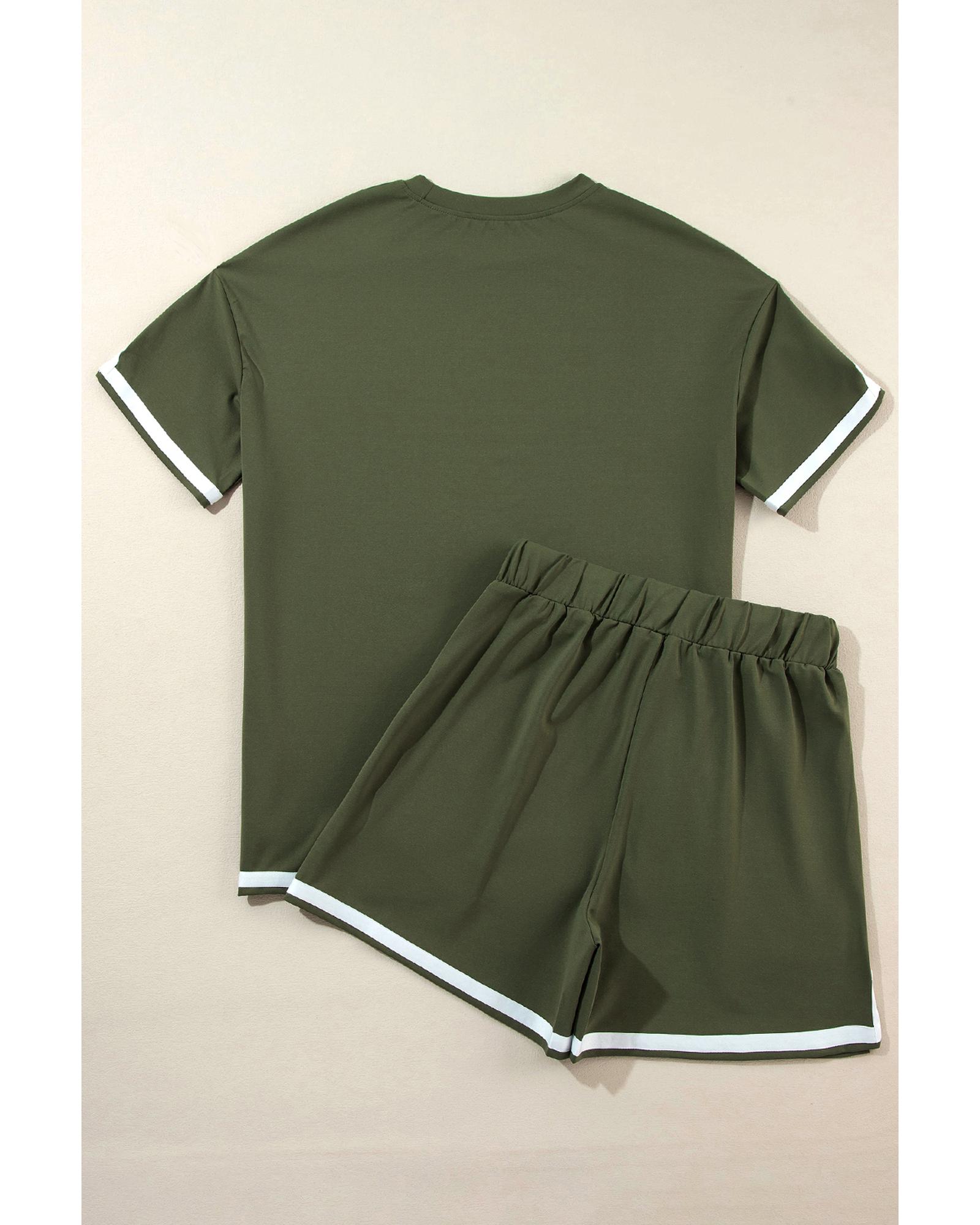 Vineyard Green Contrast Trim Tee and Shorts Set – M
